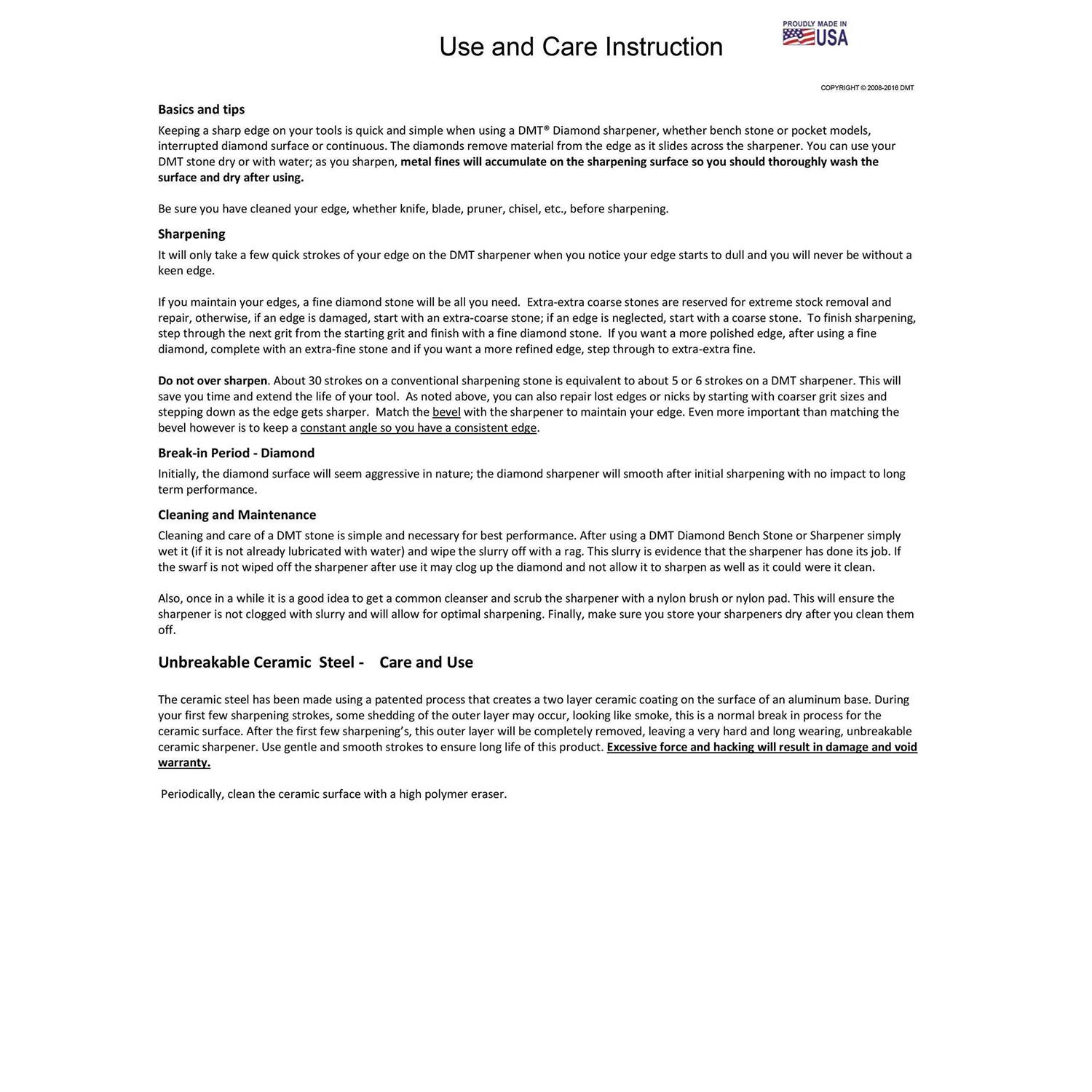 - Sharpens knives and tools faster than conventional stones with DMT’s monocrystalline diamond surface
