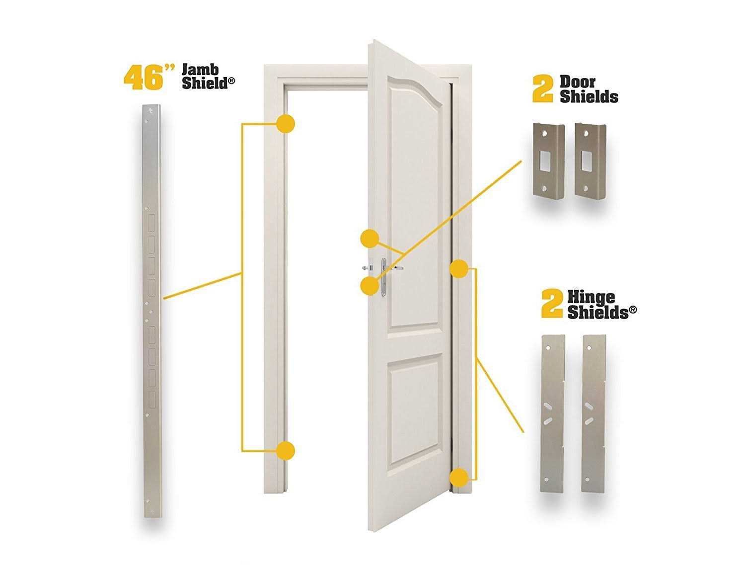 - has holes cut to fit locks spaced from 4 to 21 inches apart, 1-3/4″ door thickness. Can also be used to repair the damage from an existing kick-in.