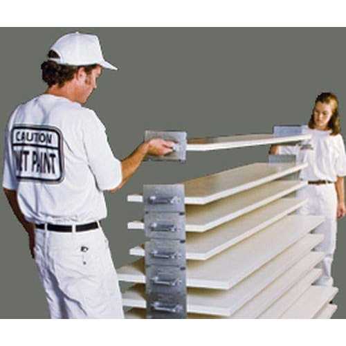 The Door Decker Finishing System is comprised of two steel plates with handles on each attached with brass eyelets. Each plate is securely screwed into the center of either end of a door with a #8 x 1 1/4 inch Phillips wafer head screw (included with purchase) prior to paint or stain application. One pair used on each door is the best method for the average height/weighted door. Once the Door Deckers are attached, painting can begin. Spray one side and then with one person on each end of the doors, flip the door and spray the opposite side. Always use a #8 x 1 1/4 inch Phillips wafer head screw when attaching the Door Deckers to the door. Other sizes/types of screws can damage the brass eyelet and weaken the handle over time. Cleaning these tools is a simple process. Toss the Door Deckers into an empty five gallon bucket and soak them in either water or paint thinner, depending on the application type covering the tools. Rinse well and air dry. Provides a system of painting both sides and edges of a door at the same time. The horizontal positioning of the door as it is finished allows the application of a heavier mil thickness without runs or sags. Allows the applicator to finish doors at a comfortable working level without stooping or bending. Saves space by allowing the finished doors to be stacked to dry. Ideal for hollow or solid wood doors, hollow metal doors, shutters and shelves.