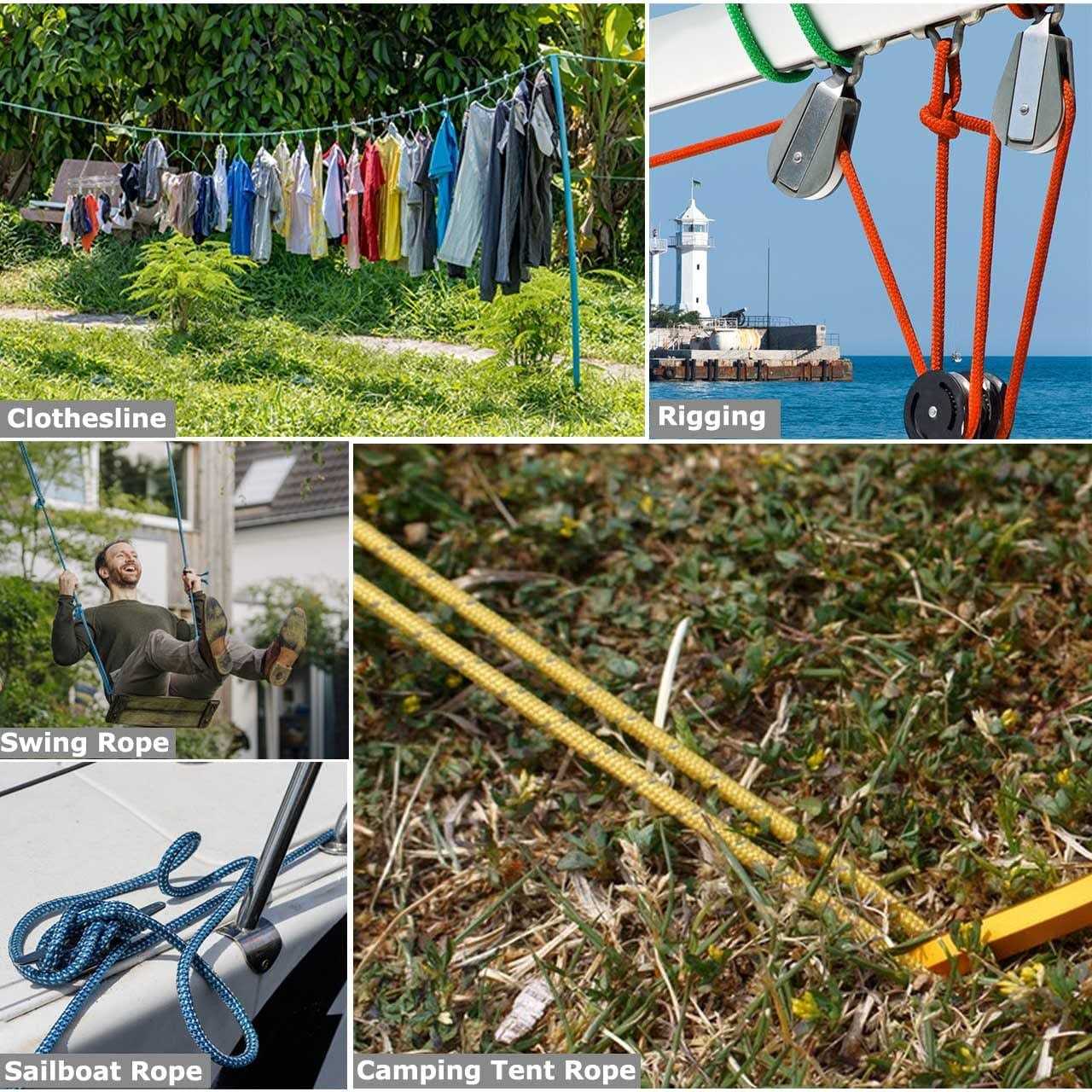 - 【Outdoor Essential】- Long lasting utility rope, great for tree work, halyard, hiking, camping, marine, swing, car towing, etc.