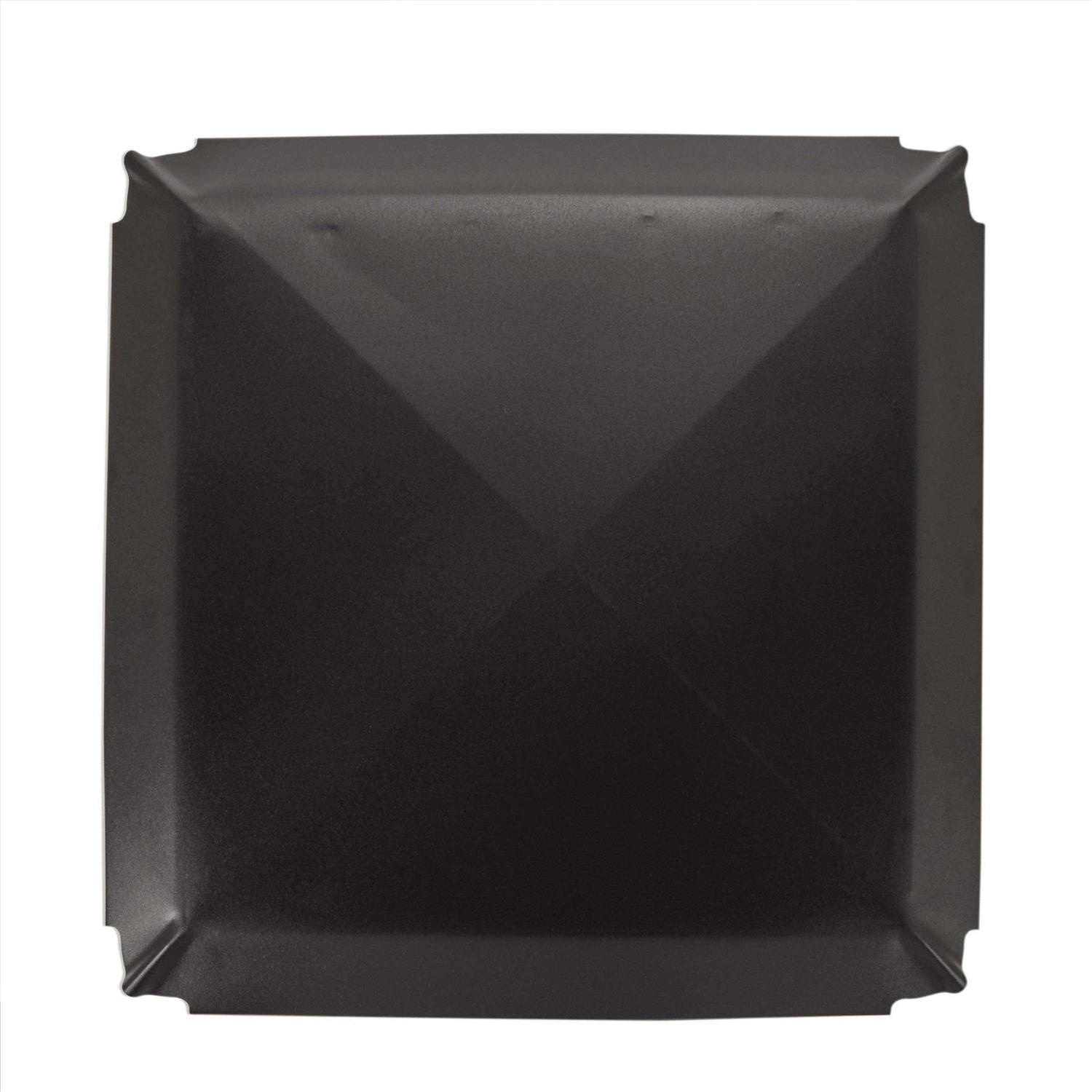 The Black Galvanized Steel Draft King chimney cover is the durable and economic choice for chimneys in most regions. Like all Draft King chimney covers, the outside mounting design provides maximum free air space and better draft while the attractive powder coat finish helps it stand up to the elements. Made with a 24-Gauge galvanized steel hood with scalloped corners and roll-formed edges, 18-Gauge 3/4 in. expanded galvanized steel mesh, 14-Gauge galvanized steel base and slotted hex-head bolts.