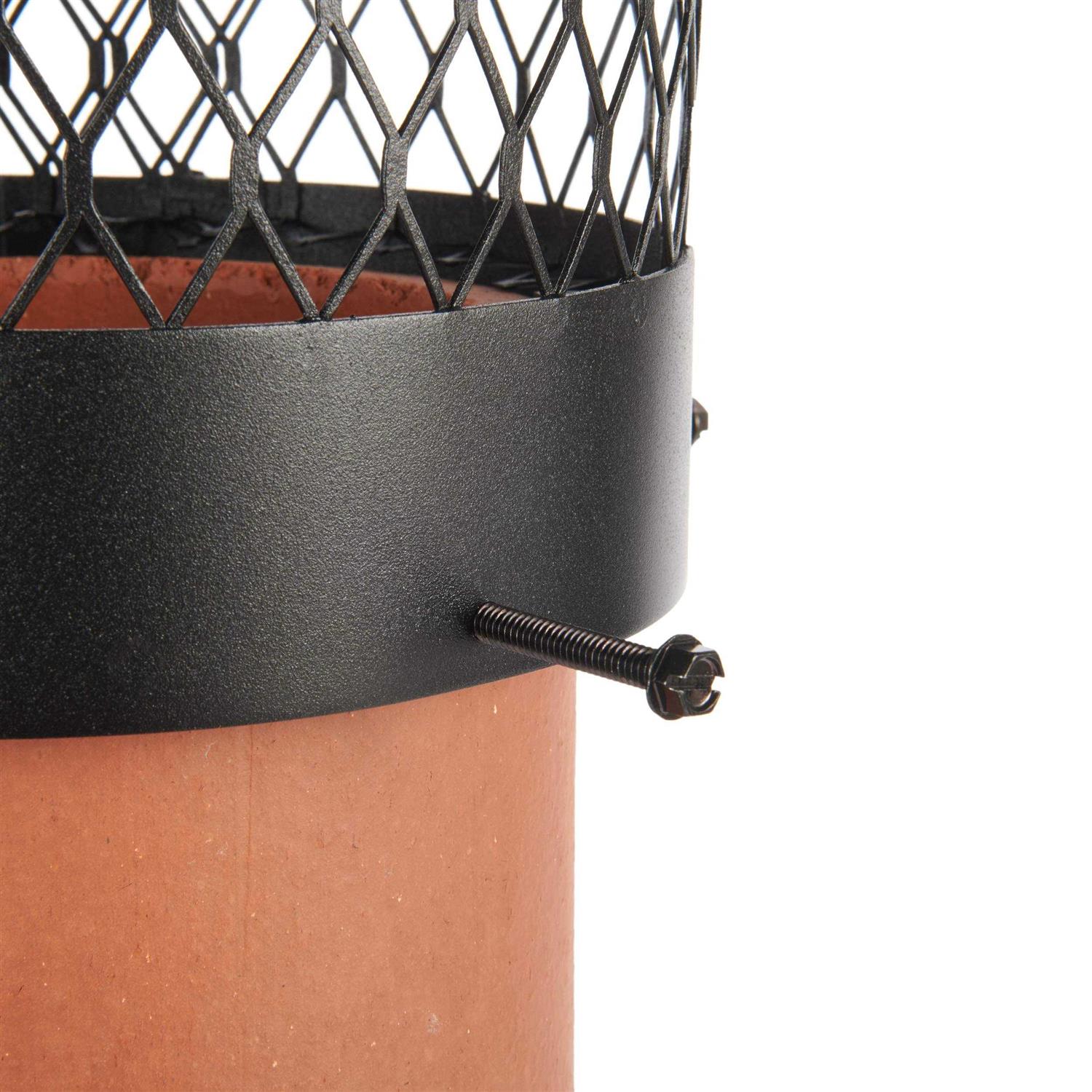 - Expanded metal mesh turned inward at base allows cover to rest firmly on flue tile, closing any openings to protect against nuisance wildlife