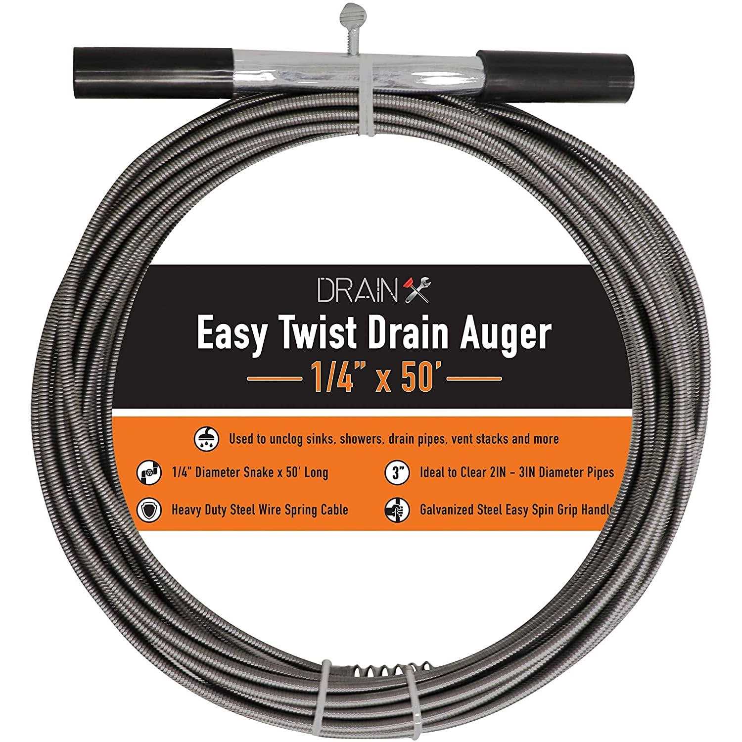 • 50 FT 1/2 Inch diameter Drainx Easy Twist augers, essential plumbing kit is flexible and helps clean up stubborn clogs