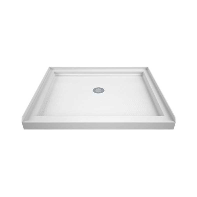 The DreamLine slimline single threshold shower base may be used in a custom shower project or combined with DreamLine shower doors for a complete shower installation or tub-to-shower replacement project. The modern shower bases (also referred to as shower receptors, shower trays or shower floors) have a low profile design for a clean polished look. DreamLine shower bases deliver a smart alternative to the time and cost involved with custom tile, with a product that is easy-to-install and an excellent value. Made of attractive high gloss acrylic/ABS materials, the bases are fiberglass reinforced for durability. Each single threshold shower base comes standard with a slip-resistant textured floor pattern, 3-side integrated tile flanges and an opening ready for a standard compression fitting drain. DreamLine offers a Collection of cupc certified low profile shower bases. These shower trays are cupc certified, which affirms they are in compliance with applicable American and Canadian Codes and standards. Note: DreamLine slimline shower base dimensions are provided for Rough opening measurements (against the studs), while DreamLine shower door dimensions are for finished opening measurements (finished/tiled walls). note: DreamLine shower bases will always be larger (approximately 2 in.) than the corresponding DreamLine shower doors. Please, take this information under advisement when ordering your shower base and shower door separately.