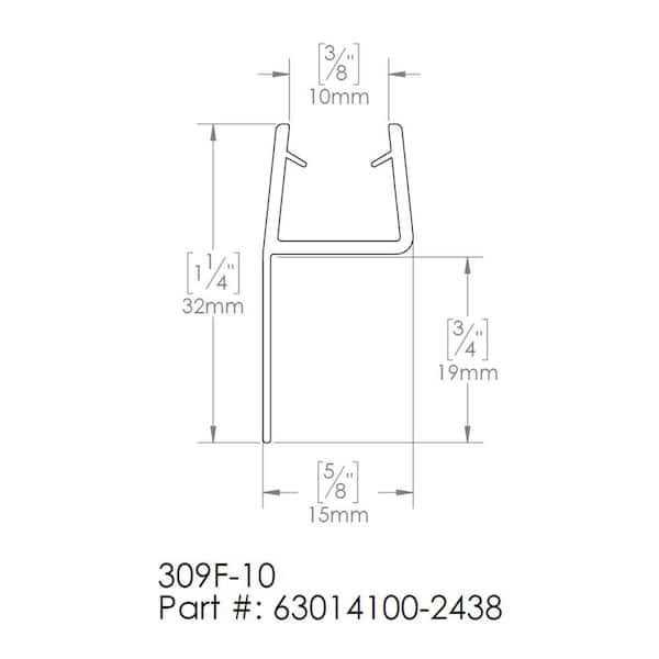 DreamLine 63014100-2438 Clear Vinyl Seal 96 inch Length for 10 mm Thick Glass Shower Door