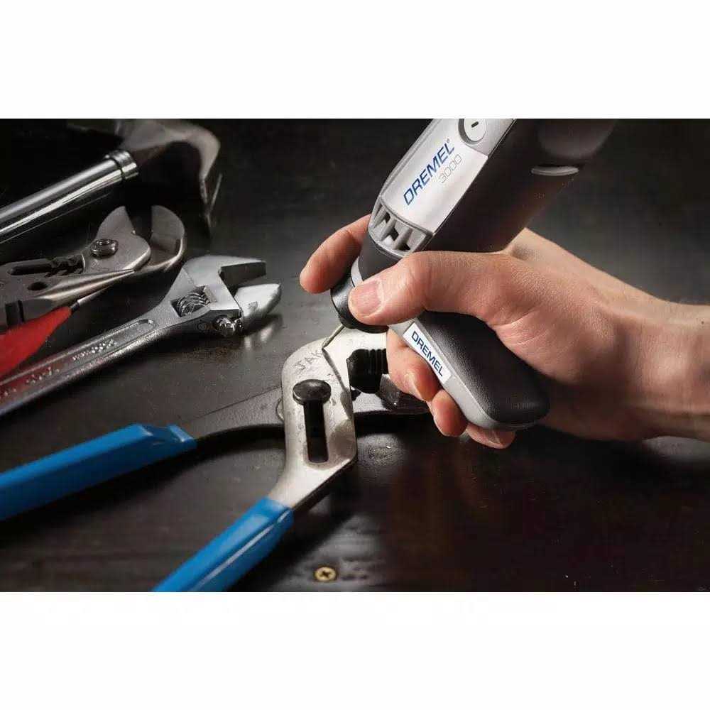 The Dremel 3000 is the result of upgrading our most popular rotary tool using user-requested features to improve both the tool’s design and its ergonomics. The redesigned tool now features the EZ Twist nose cap with an integrated wrench, plus a more efficient fan design, side vents for cooler running temperatures and greater comfort during extended use. The tool‘s more symmetrical design and trumpet-shaped nose cap provides a more comfortable pencil-grip tool hold. Along with the tool itself, the Dremel 3000 Series variable-speed rotary tool kit includes 25 popular accessories to help make your next project even easier. The ability to use all existing Dremel rotary tool accessories and most attachments let the 3000 complete a wide range of applications including cutting, grinding, sanding, carving and polishing a variety of materials.