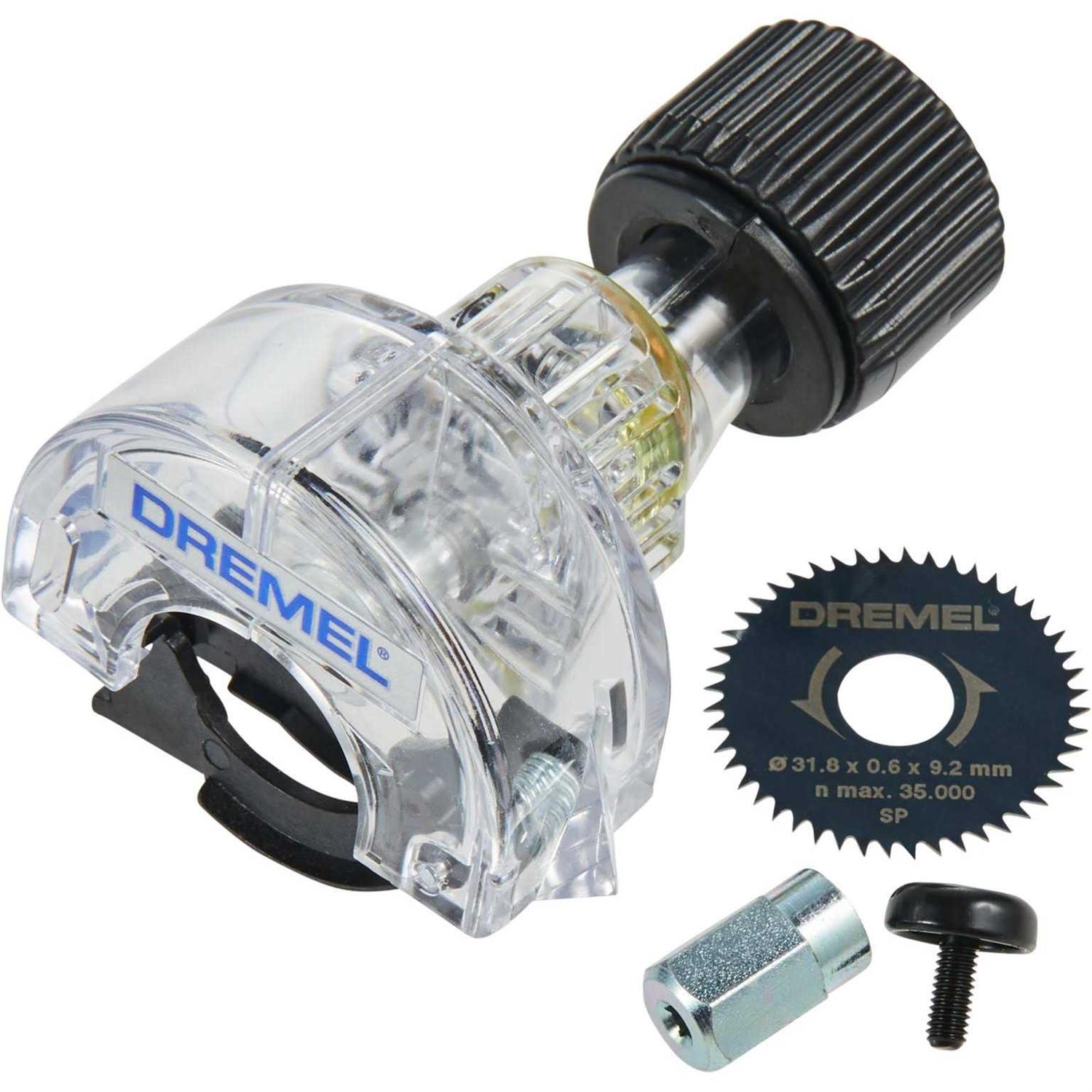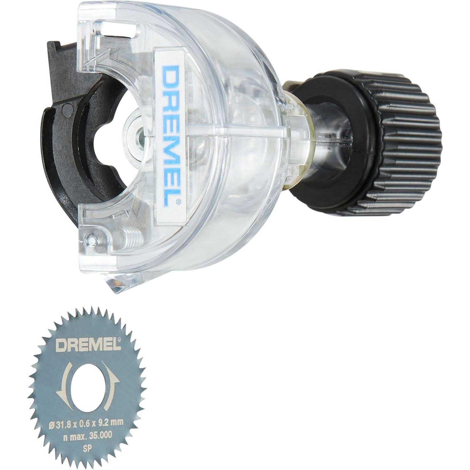 Dremel Mini Saw Attachment 26150670JA Description Features Transforms your Dremel tool into a precision circular saw for fine. clear and straight cuts in all sorts of wood. Perfect for laminate and wood flooring or thin wood plates. The safety guard and lower guard make it safe to use the circular saw blade. The guide allows to make straight cuts. Quick connect attaches your Dremel tool in seconds. This Mini SawAttachment is easier to use than a hand saw. more precise than a jig saw and fits in tighter spaces than a circular saw.