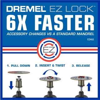 EZ Lock technology allows for quick accessory changes without the need for a screw or wrench. The kit provides the organized storage of popular Dremel accessories in a small, compact footprint. This accessory set offers a reusable storage case with clear lid and lift-out tray for easy organization of the included bits. Specially curated kit for all cutting applications. Comes with re-useable storage case and 11 EZ Lock accessories. EZ Lock technology allows for quick accessory changes without the need for a screw or wrench. Clear lid, storage bin, and removable tray make accessories easy to locate. Can stack easily, stand upright, or hang on a wall by hook. Small footprint saves space.