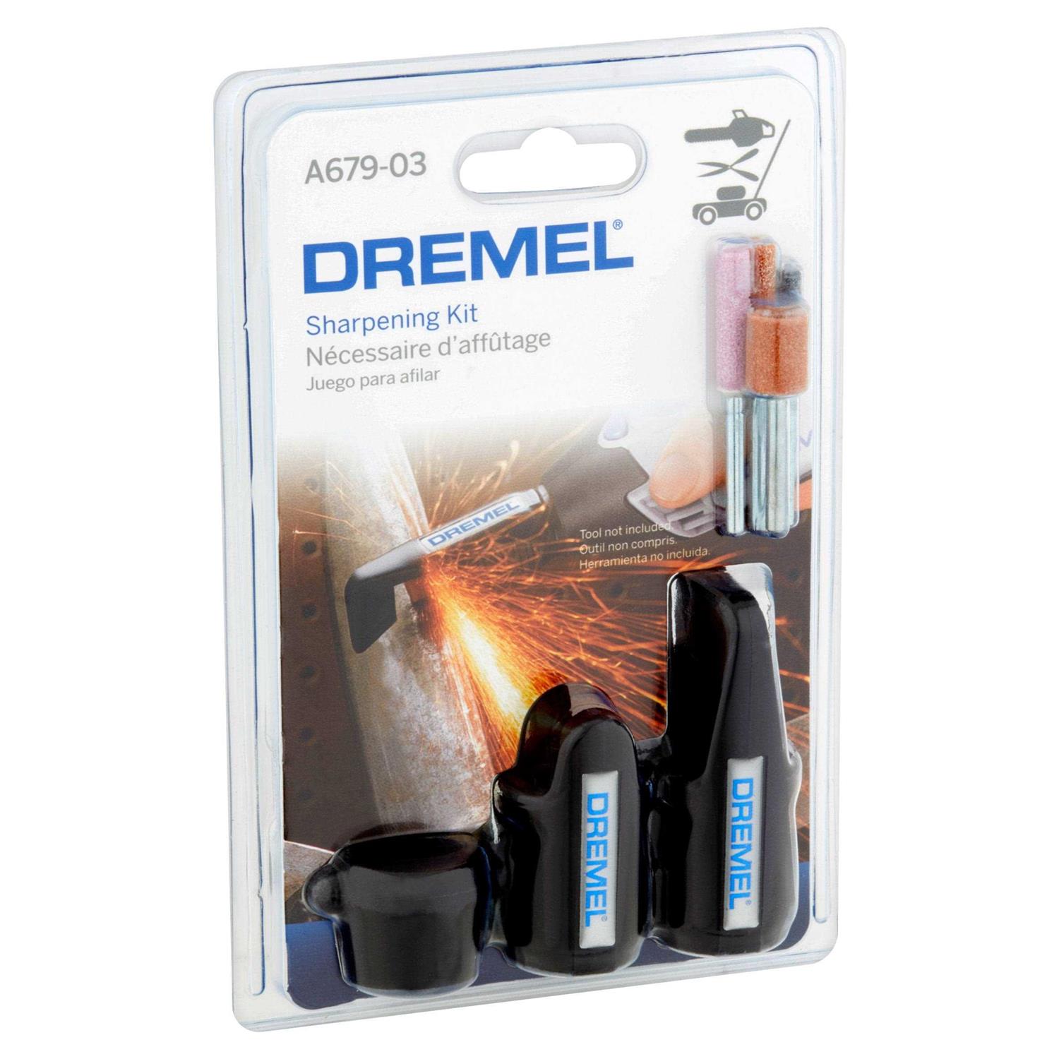 Give your go-to tools a new lease on life. The A679-02 Sharpening Kit includes three of our most-popular attachments: the Dremel chain saw sharpener, lawn mower sharpener, and garden tool sharpener. Instructions Included.