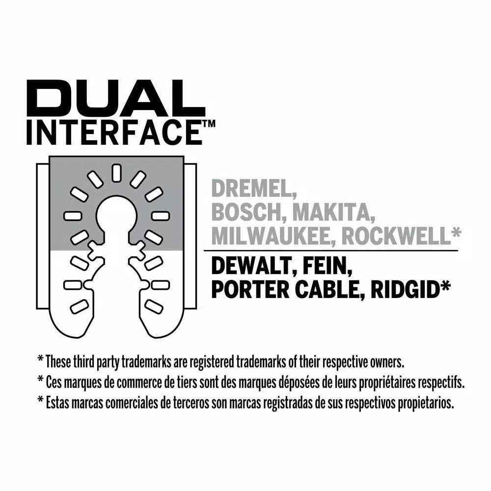 Dremel universal oscillating accessories are the first truly universal oscillating accessories available that require no adapter. The unique dual interface fits all competitive Oscillating Tool, including those with a quick change feature. The Dremel MM485U universal carbide flush cut blade has high-performance carbide teeth designed to cut hard and abrasive materials like nails, screws, stainless steel bolts, galvanized pipe, plaster & lathe, cement board, fiber board, sheet metal, slate, ceramic tile and more! Its wide 1-1/4 In. blade speeds through long cuts and can make plunge cuts up to 1-11/16 In. deep.