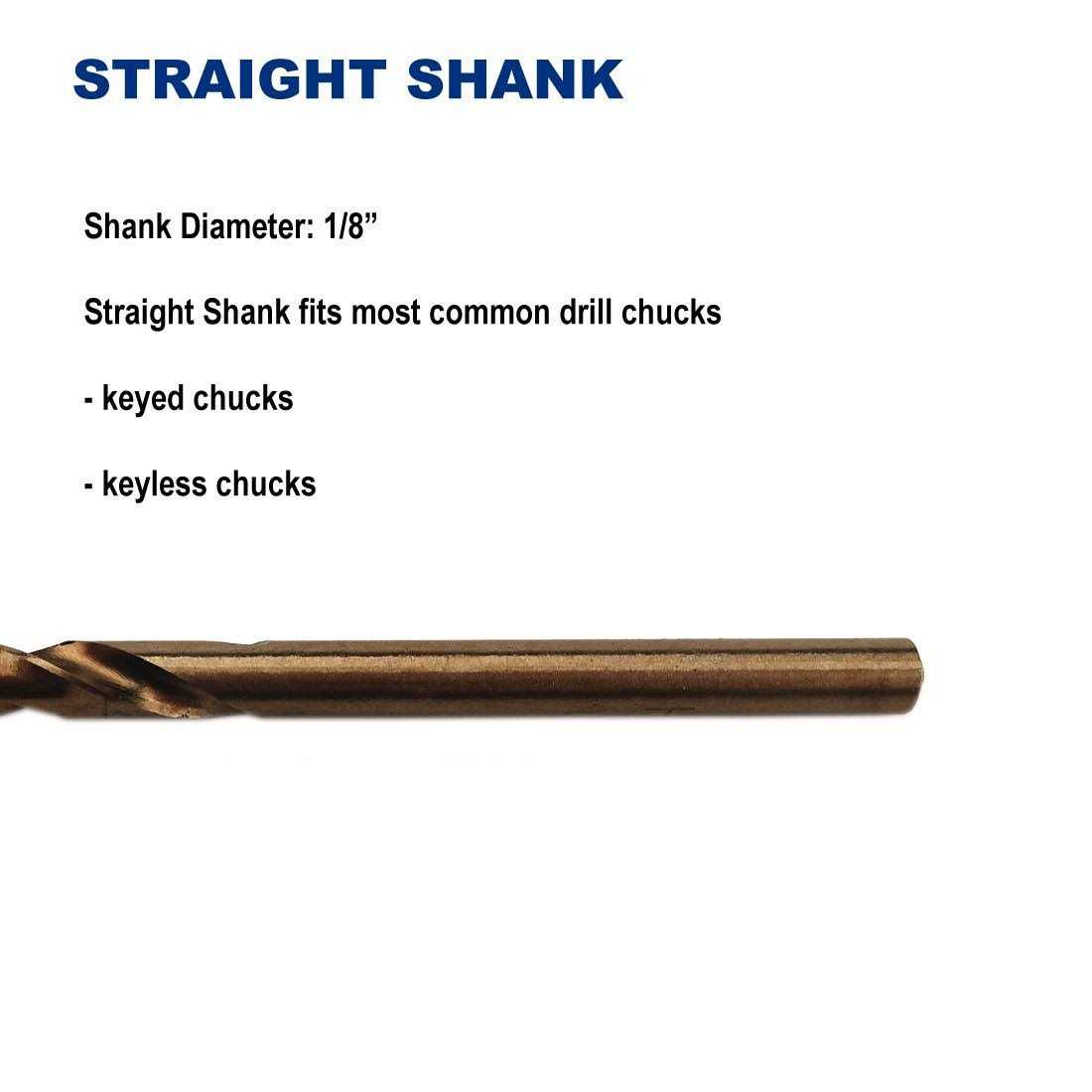 Drill Hulk 1/8-Inch Cobalt Steel M35 Jobber Length Twist Drill Bits for Hard Metal, Stainless Steel, Pack of 12