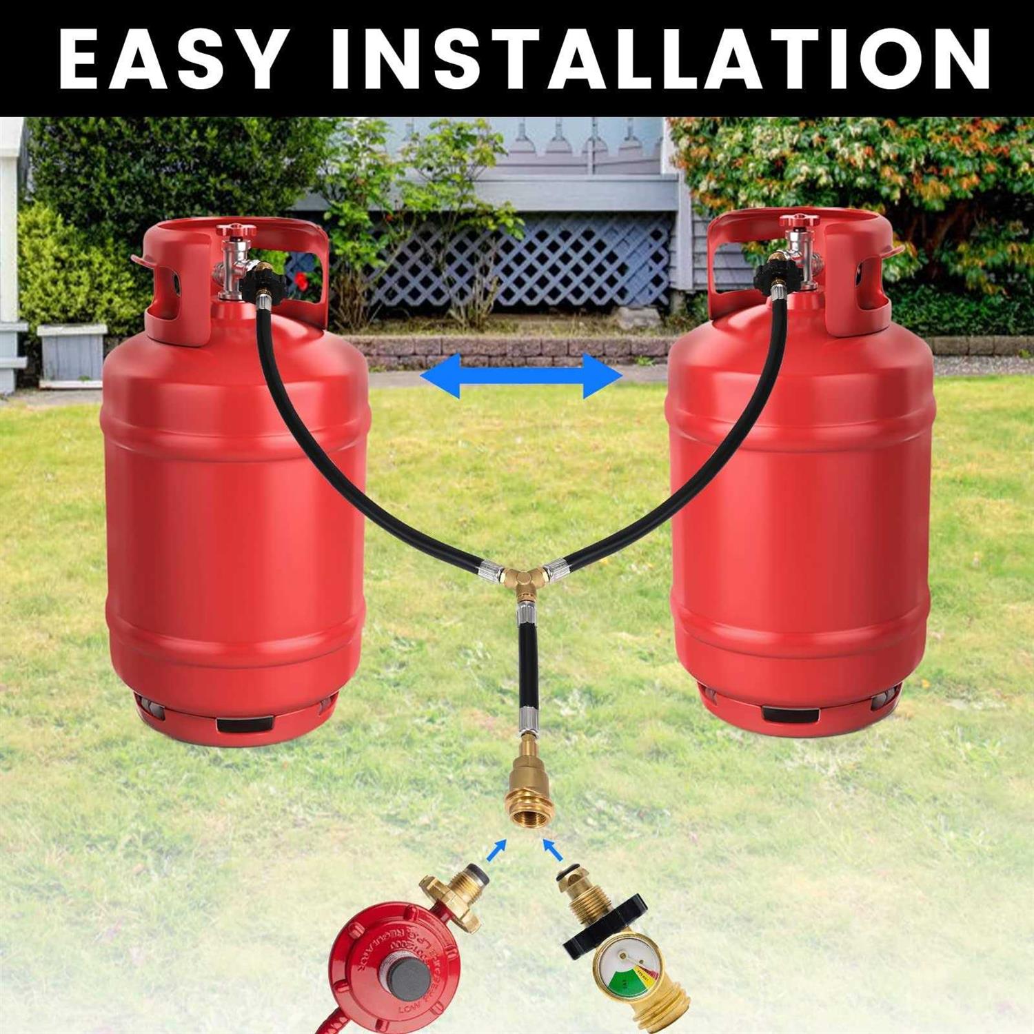 Dual Propane Tank Connection Kit Two Way POL & QCC Y Splitter Hose to Connects 5-100lbs Propane Tank Suitable for RV