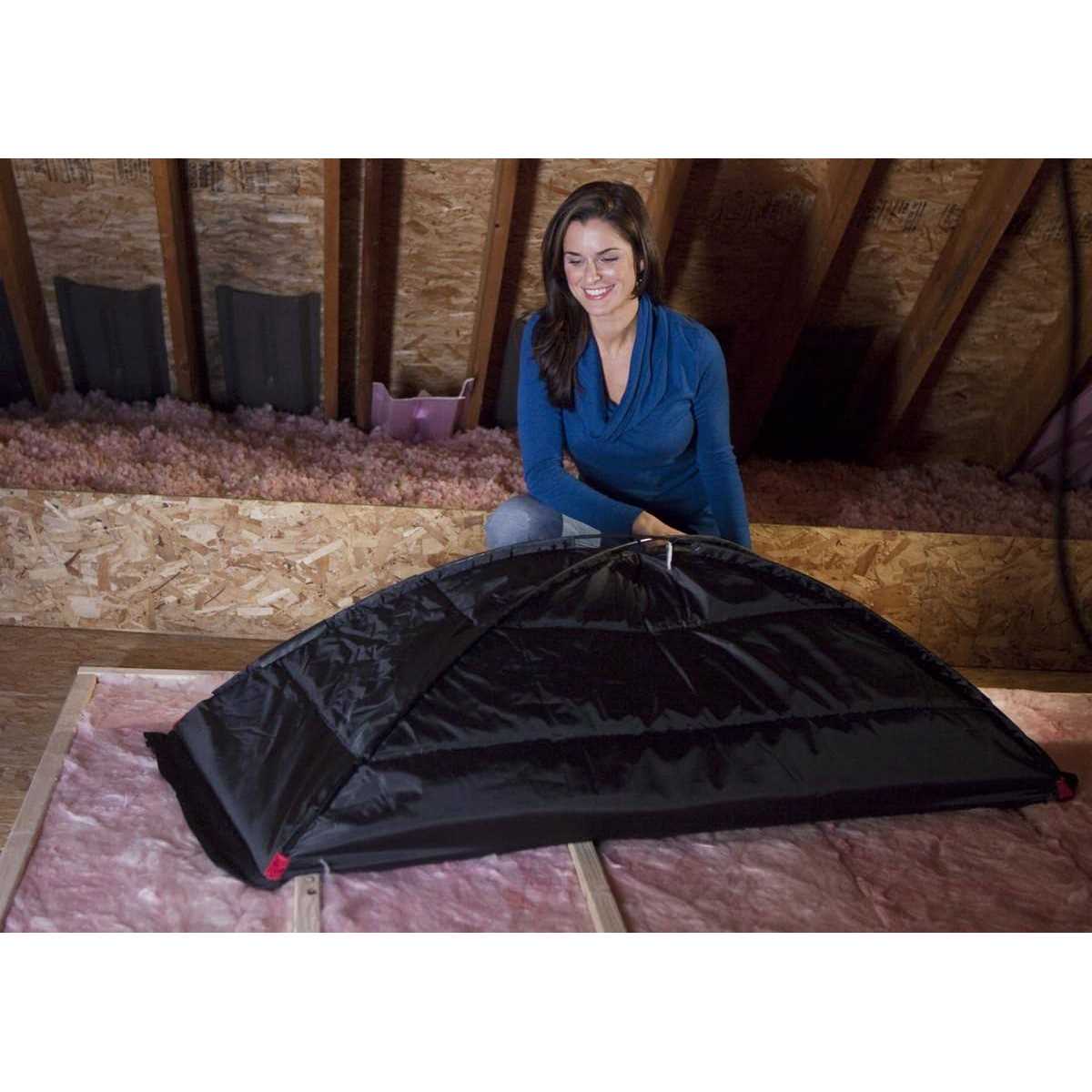 Attic openings or pull-down stairs are rarely insulated and can be a source of significant energy loss. The Duck Brand Attic Stairway Cover is a simple solution to seal attic stairway openings year-round, effectively blocking drafts and retaining room temperature. Its easy to assemble and install, flexible and lightweight, and easily repositionable to allow attic access. Use together with other Duck Brand weatherization products to make your home more comfortable and energy efficient all year long.