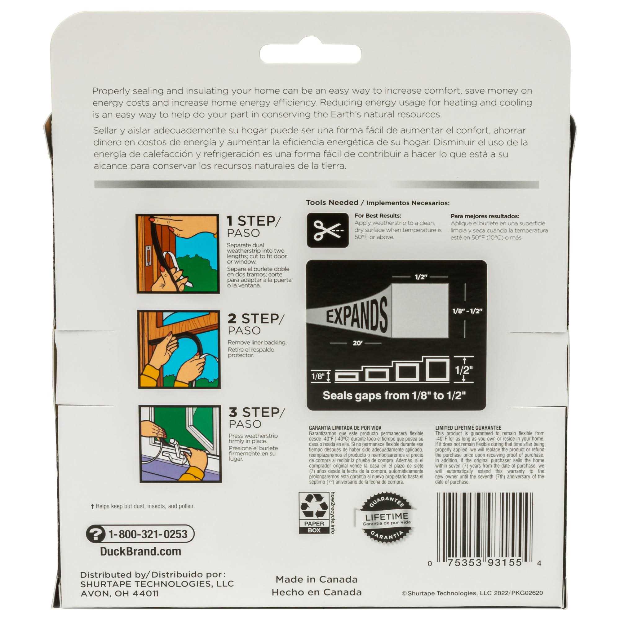 Large gaps and cracks around windows and doors cause drafts that lead to high energy costs. Duck Brand Max Strength Expanding Foam Seals fill larger gaps up to 1 in. around windows and doors that may let outdoor air inside. They can also help keep out unwanted dust, insects and pollen during the warmer months. Simply cut to size and then apply the self-adhesive foam to your door or window for added weather protection. This premium self-adhesive foam seal expands to fill larger cracks and gaps in your home to block drafts.