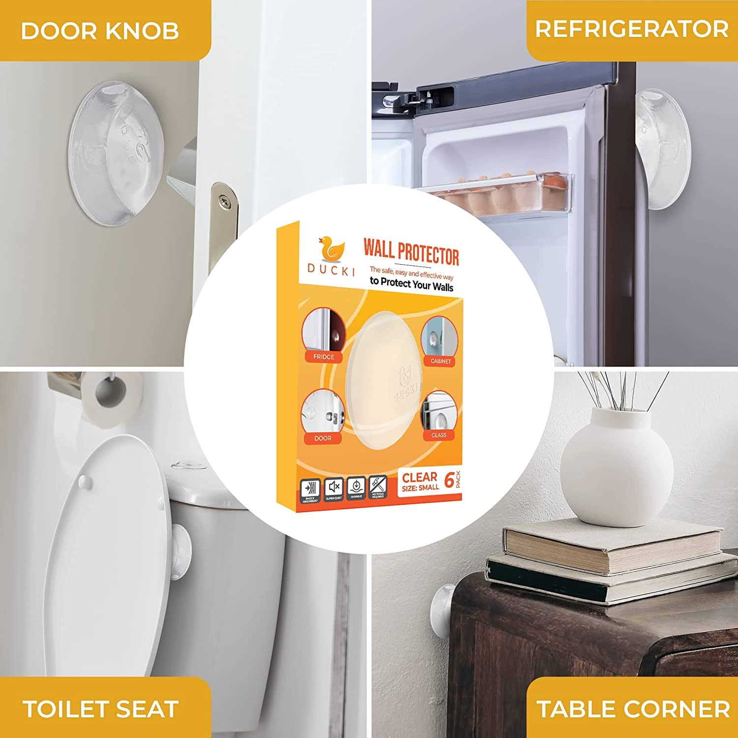 Ducki Wall Protectors – 6 Pack Clear – Self Adhesive, Reusable Solution for Stopping Wall Damage & Noise from Doors, Refrigerators & More in Your