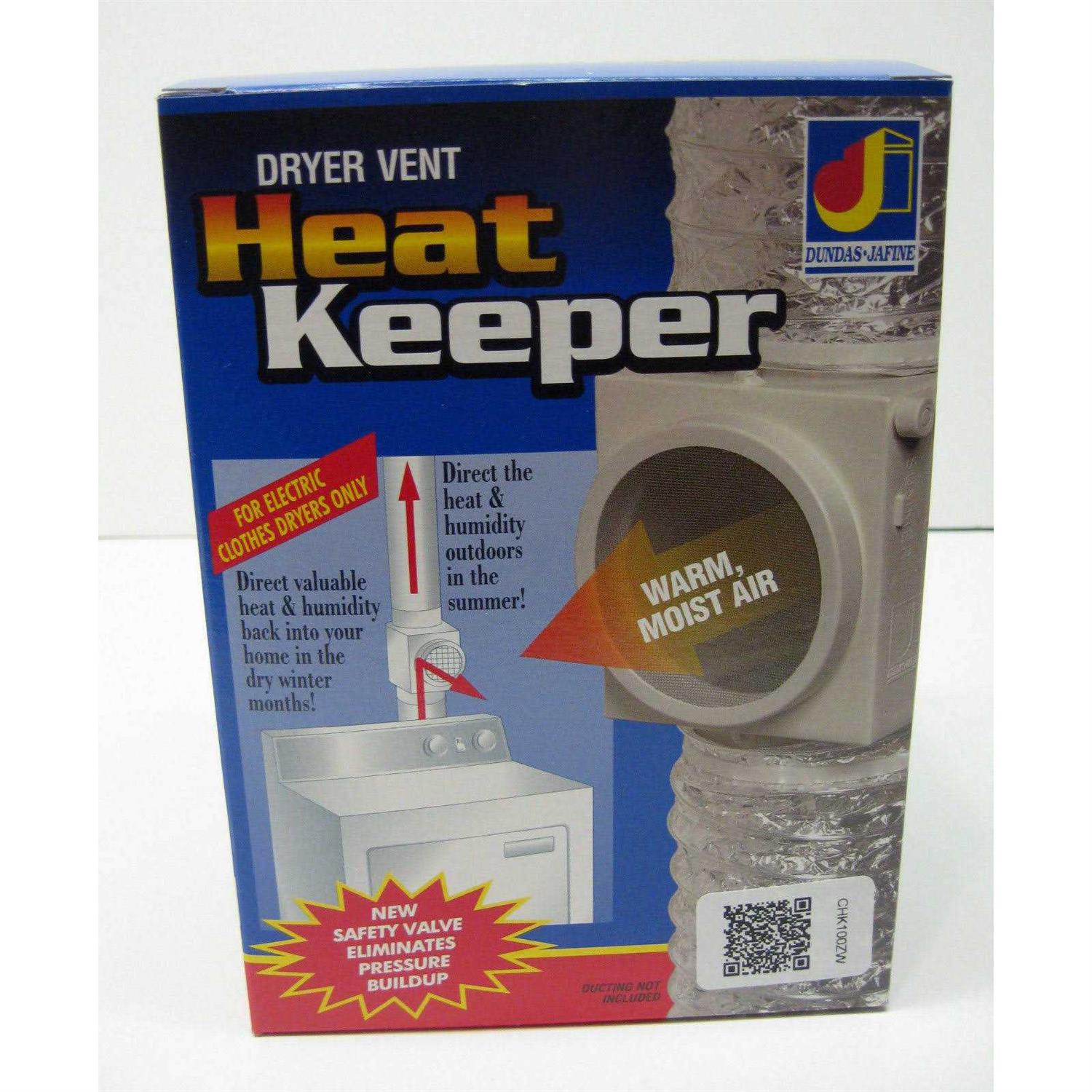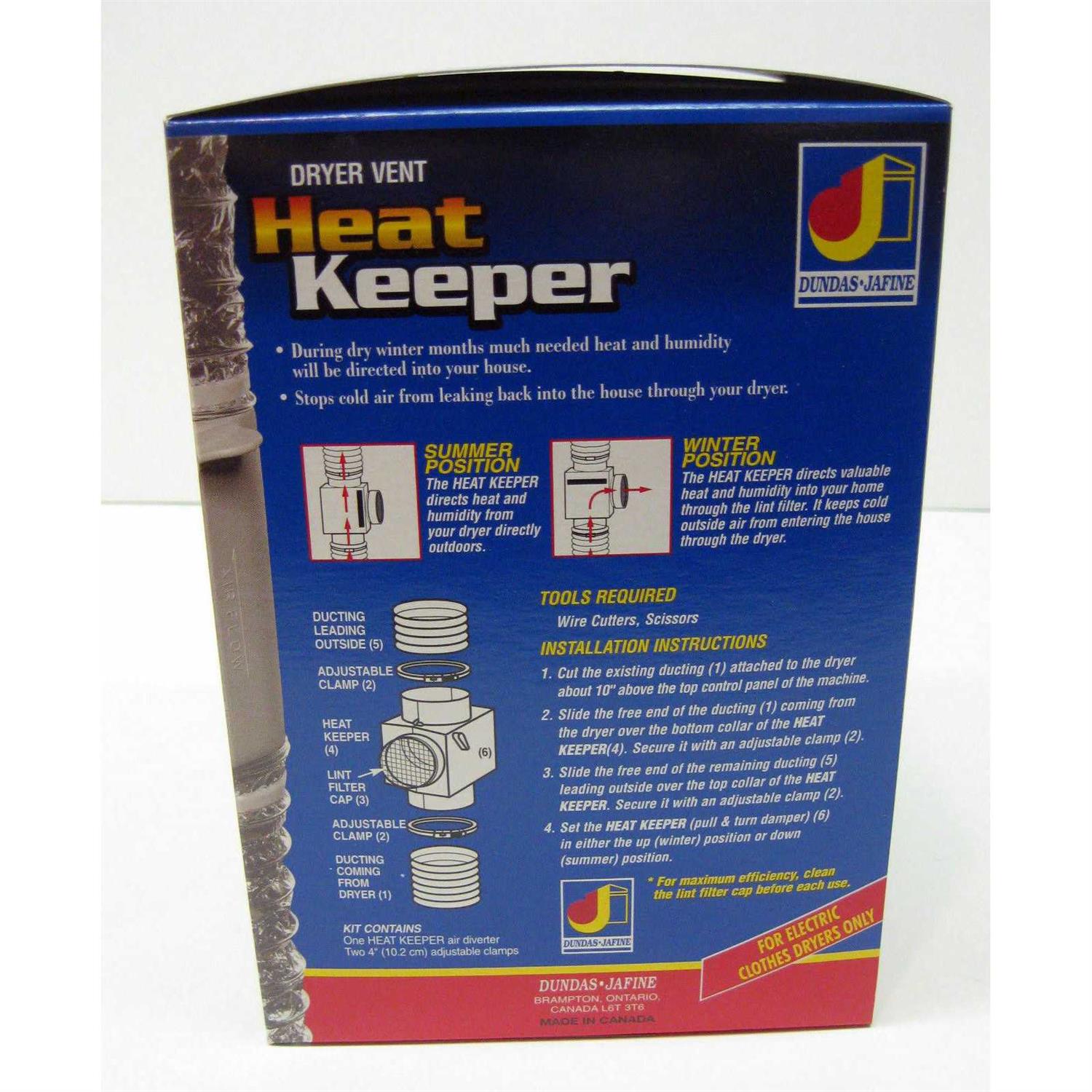 When the cool, harsh winters, leave your house feeling dry and arid its time to turn to Dundas Jafines Heat Keeper Kit to add a little warmth and moisture back into your home. Its important to note that this kit should never be used with gas dryers. This kit allows the warm moist air from your dryer to be directed back inside instead of venting outdoors. The heat keeper unit installs easily at any point along your dryer duct run and the removable lint cap is cleanable. Plus, there is a summer or winter setting that can be selected so you have control over the warm air being exhausted. A safety valve on this product also helps eliminate back pressure. Included in this kit is a 4 x 8 ProFlex duct which is UL approved meeting all fire and safety ratings for safe dryer venting. Its made of heavy duty aluminum foil laminate that will not support combustion which makes it fire resistant.