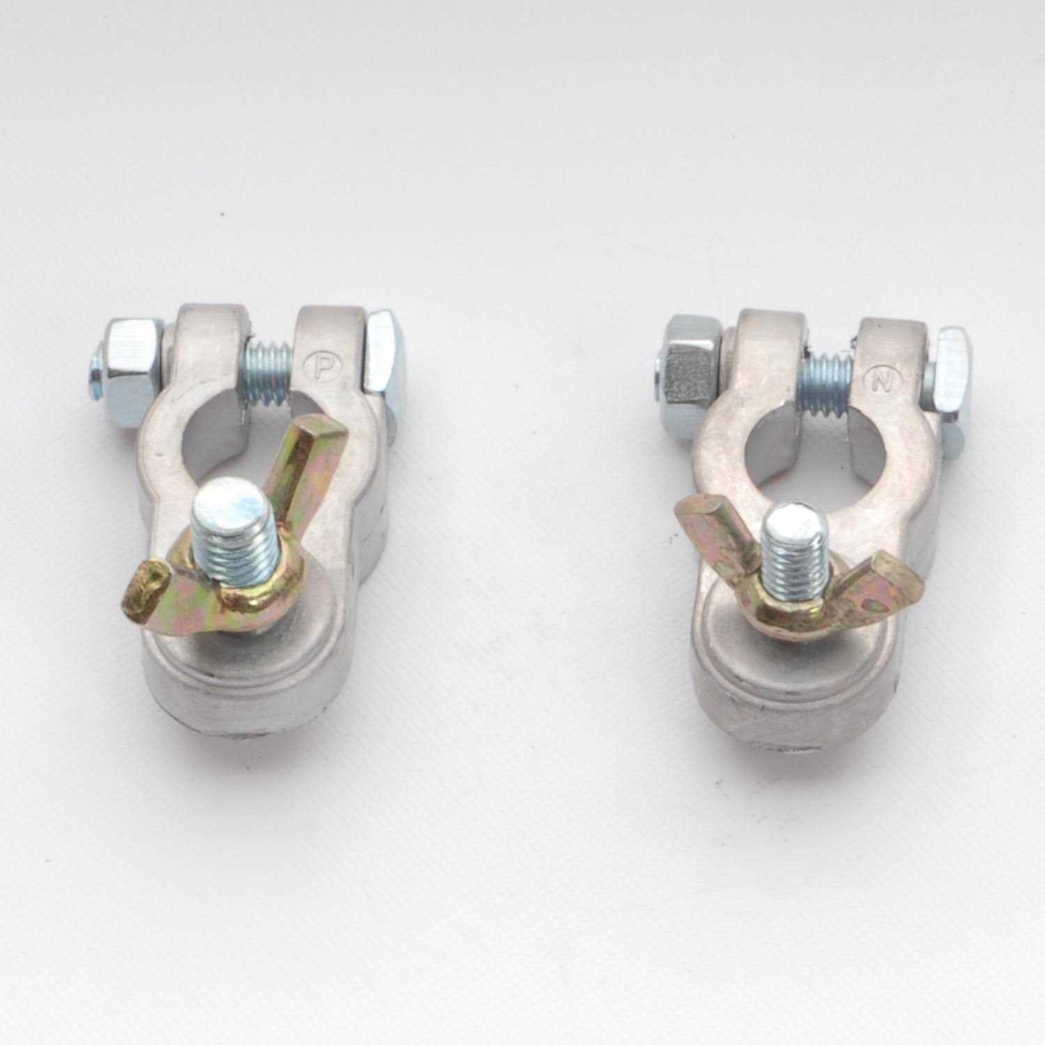 Top post lead marine battery terminals with wing nuts are designed to convert top post batteries to marine style. Lead material for acid corrosion protection One 5/16 In. negative and one 3/8 In. positive stud Clamp type wing nut terminal converts to marine or other special uses Solid construction for maximum current carrying capacity Economical and practical