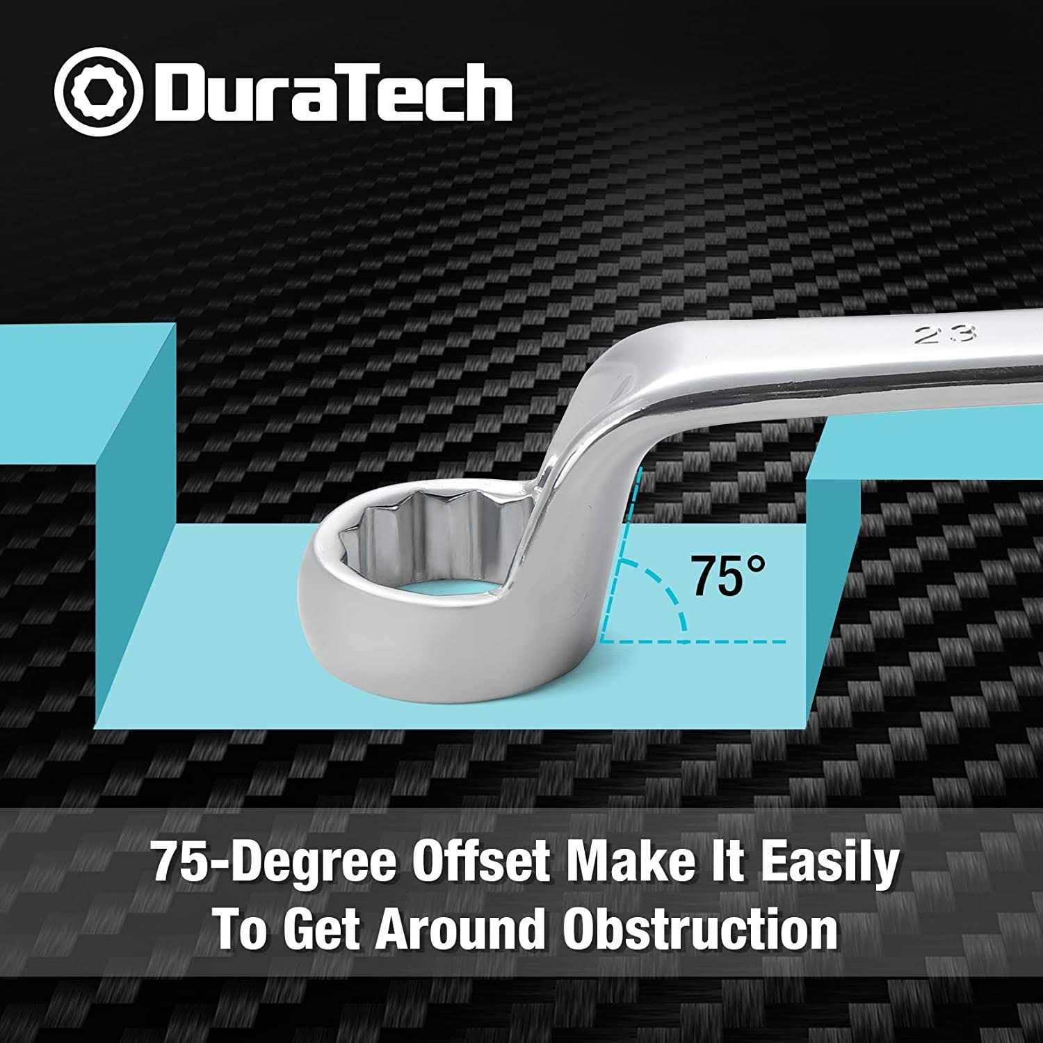 DuraTech Offset Box Wrench Set, Metric, 9-Piece, 6-23mm, 75-Degree, CR-V Steel, Organized in Rolling Pouch
