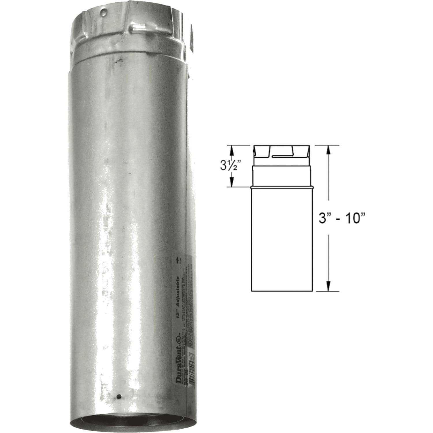Pipe is 3″ diameter, 12″ length Galvalume outer finish Country of origin: United States Slides over existing pipe to add 3″ to 10″ of additional length to your stack Pipe itself does not adjust. It is not telescopic Use to add length to Pellet Vent Pro pipe. 12″ pipe adds 3″-10″ of length, 18″ pipe adds 3″-16″ of length, when used with rigid sections of pipe. Galvalume or painted black outer finish.