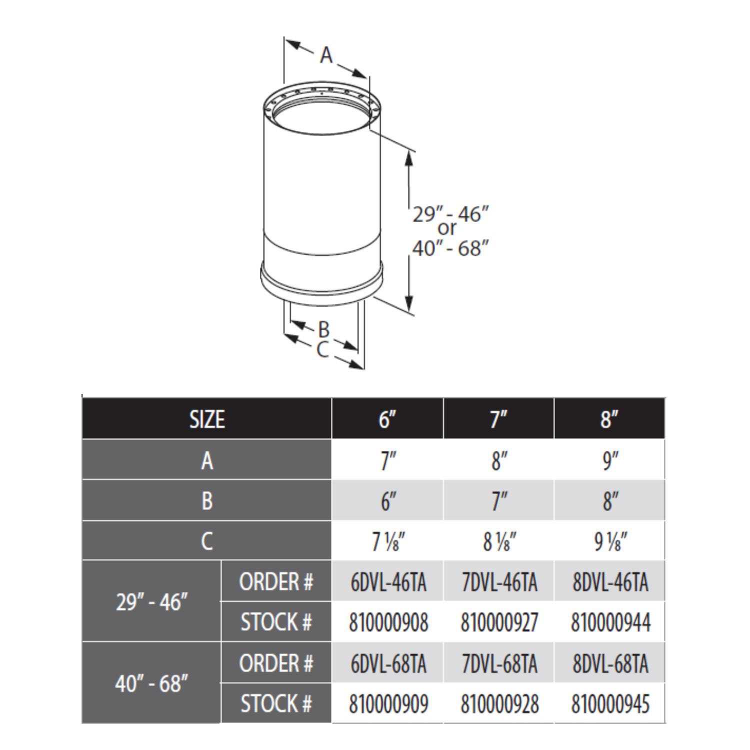 DuraVent 8″ DVL Telescoping 29″ – 46″ Pipe Length – 8DVL-46TA