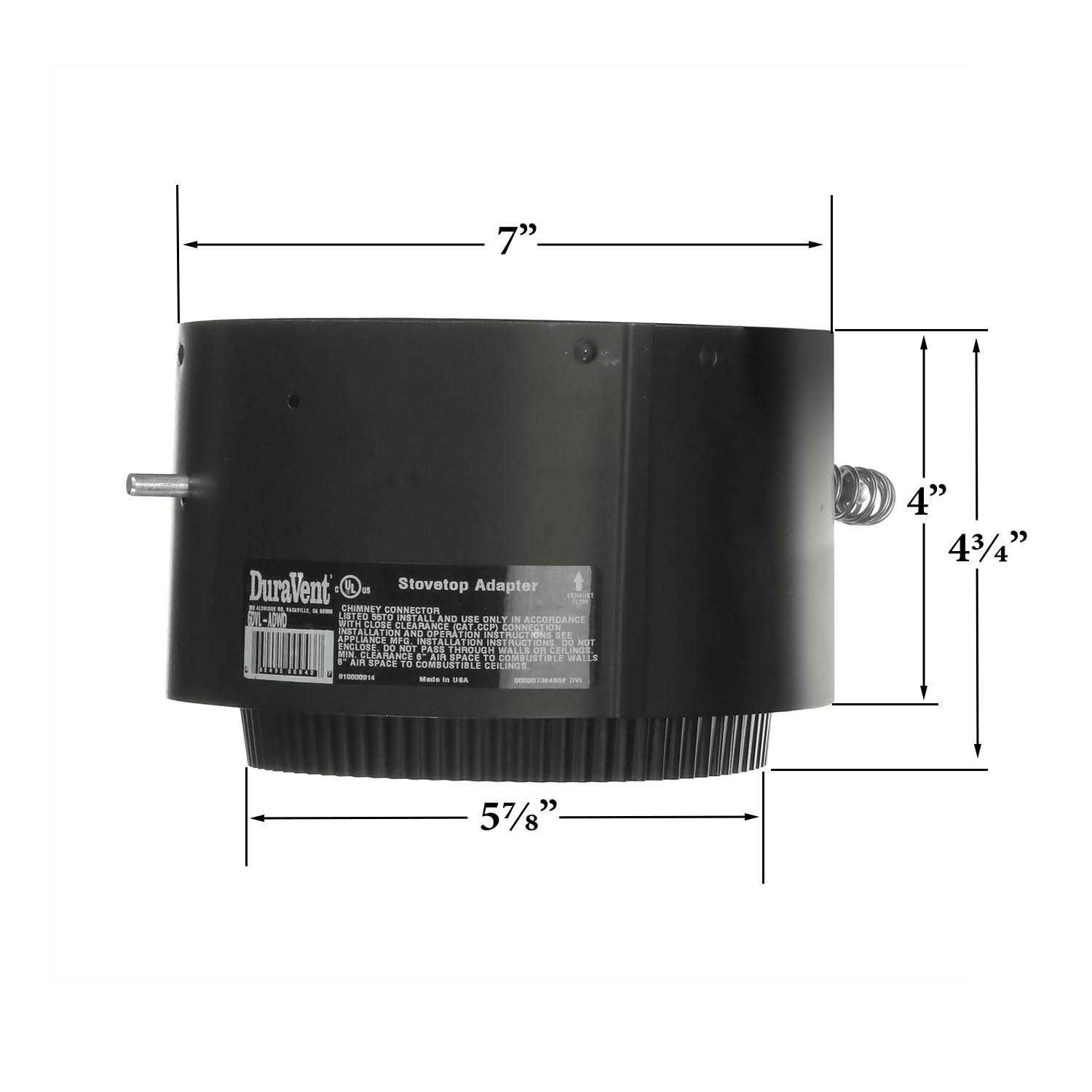 DuraVent DVL 6DVL-ADWD 6 inch Double Wall Damper Section Stovetop Adapter