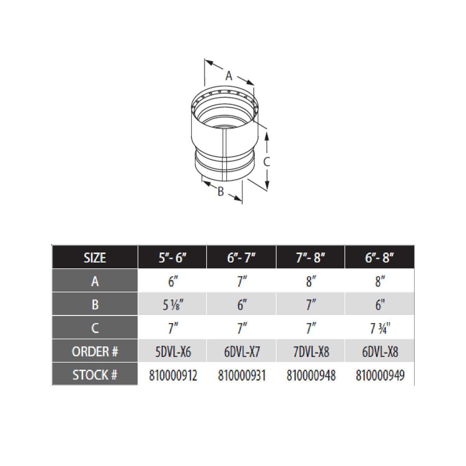 DuraVent 6DVL-X8 DVL Increaser 6″ – 8″