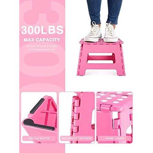 - 9 inch Height Heavy Duty Foldable Stool for Adults Kids, Small Step Stool Camping Stepping Stool