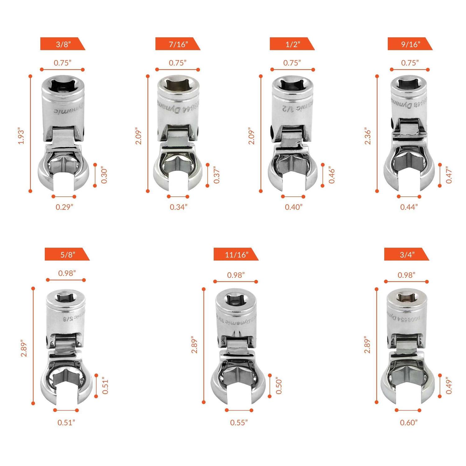 Dynamic Tools D010029 3/8″ Drive SAE Flare Nut Socket Set (7 Piece), 3/8″ to 3/4″