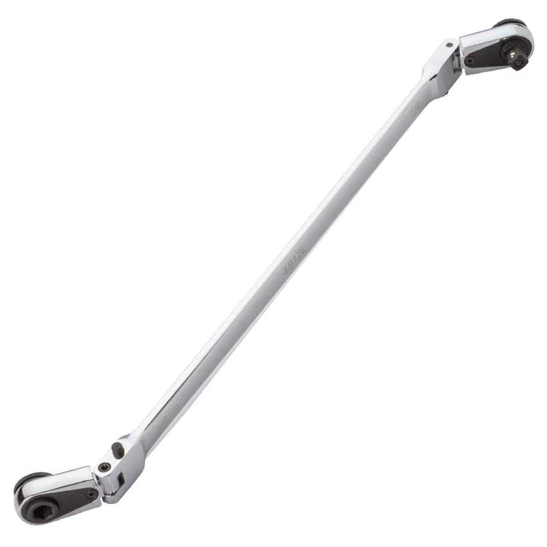Features and Benefits: Extra long 11.75 long 1/4 Square Drive end 1/4 Magnetic Bit end Custom reversible switch High polished chrome finish The 4S12L is Extra Long and has Locking Flex Heads. A 2 in1 tool. One end a square drive and the other end a bit driver. With the 180 degree flexible head at each end it has multiple angles which makes it great for tight spots under dashboard and bumpers. With the Custom Reversible switch and quick button release it is a must for all tool boxes. The high polilished Chrome make easy to clean.