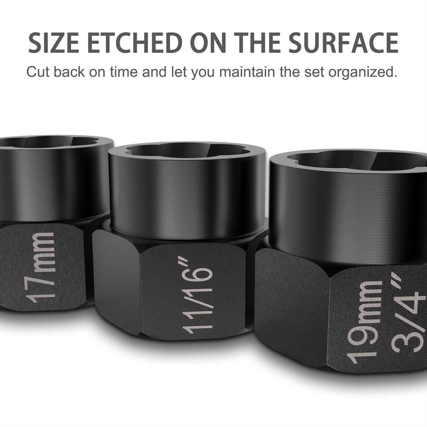 • Sizes: 1/4″, 5/16″(8mm), 3/8″, 10mm, 7/16″(11mm), 12mm, 1/2″, 13mm, 9/16″(14mm), 5/8″(16mm), 17mm, 11/16″, 3/4″(19mm).