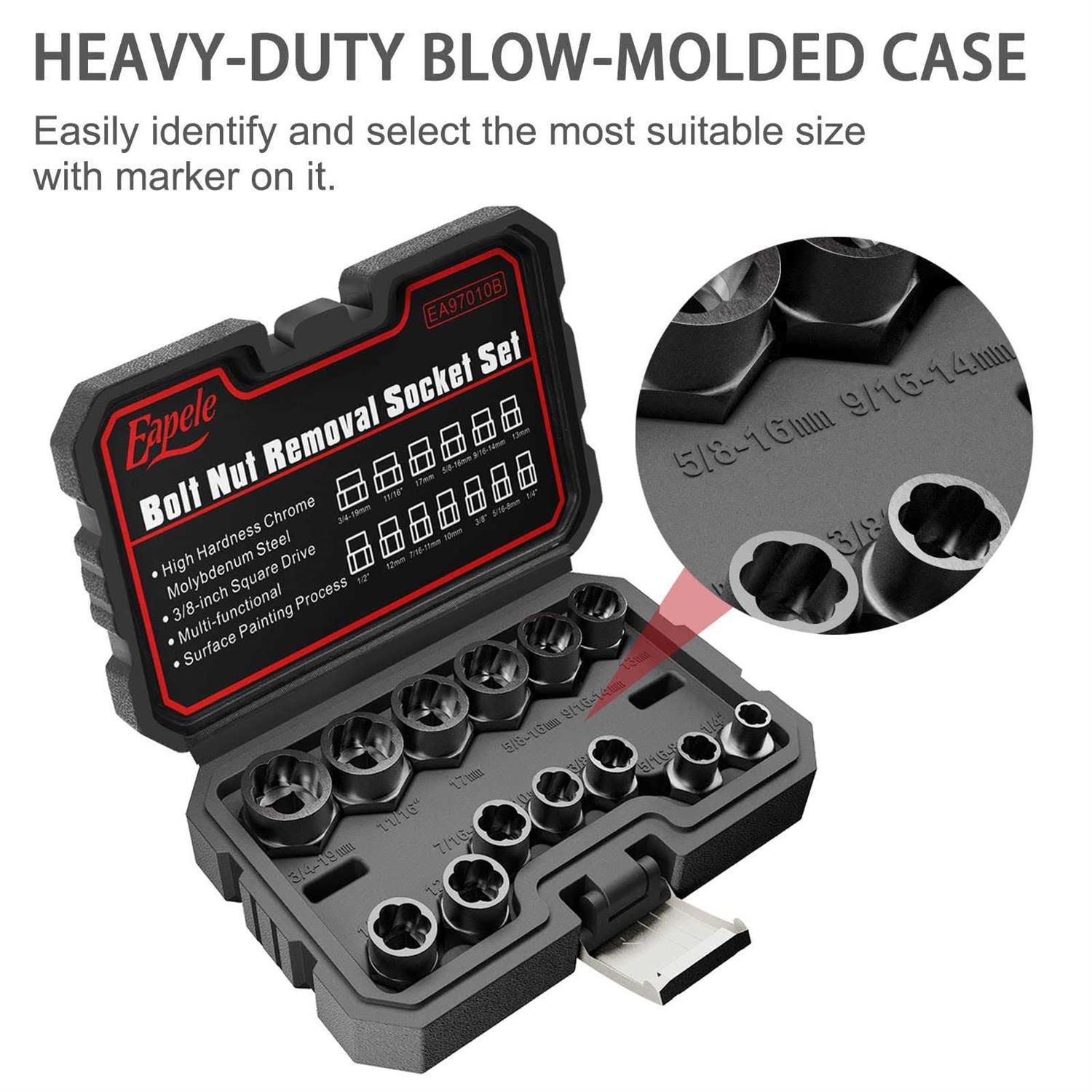 • Socket & Socket Wrench Sets by Eapele. Details:Getting stripped headed nuts and bolts out the easy way with the Eapele impact bolt remover set !