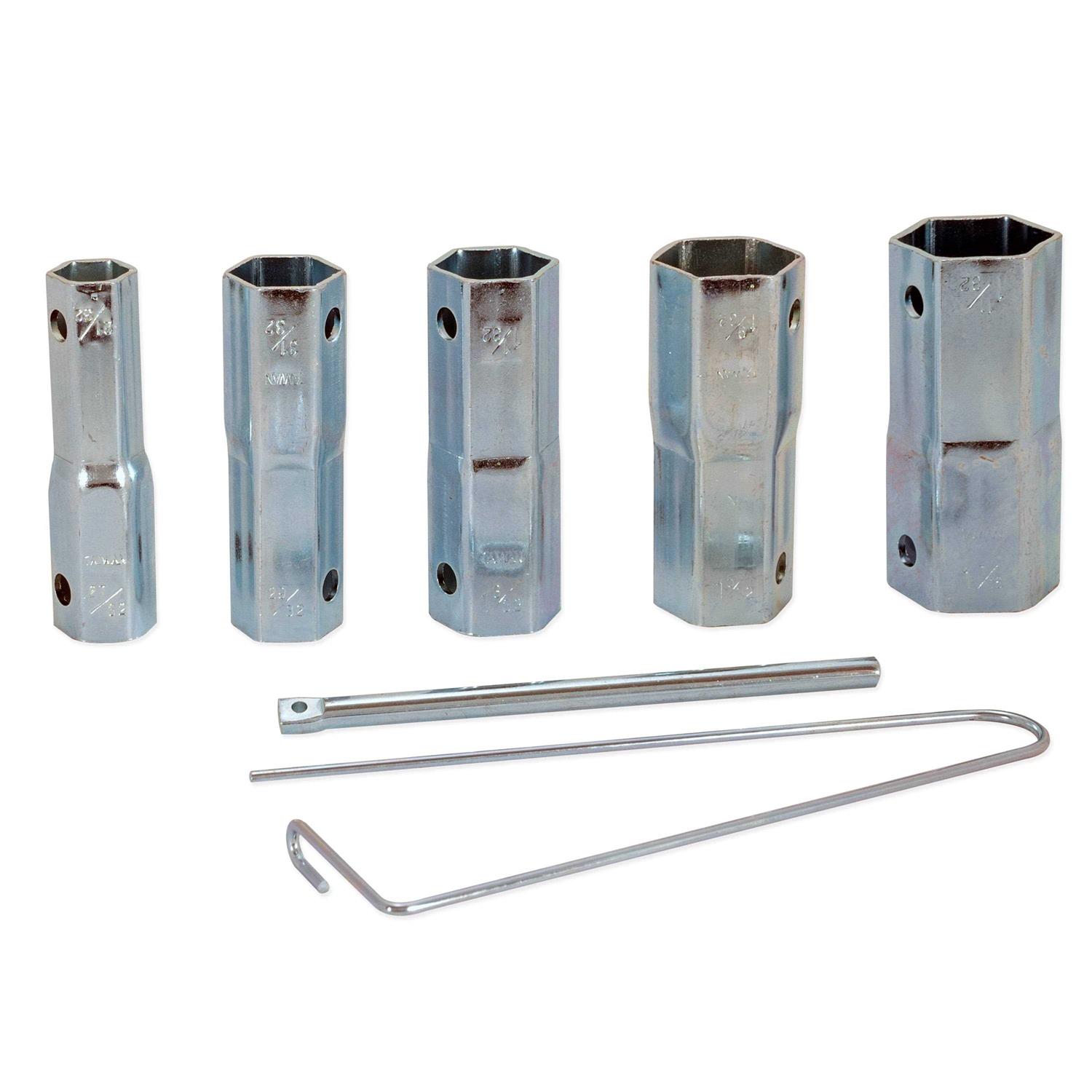 The plumber’s socket set makes it easy to remove valves, fittings, and nuts commonly used un tubs and showers. The set is manufactured with 5-double end wrenches for use in 10-different Standard sizes. Each wrench is built with 2-sides or ends that are engraved with notations for a quick and easy size selection. The bar handle makes it easy to operate or to carry on the job.