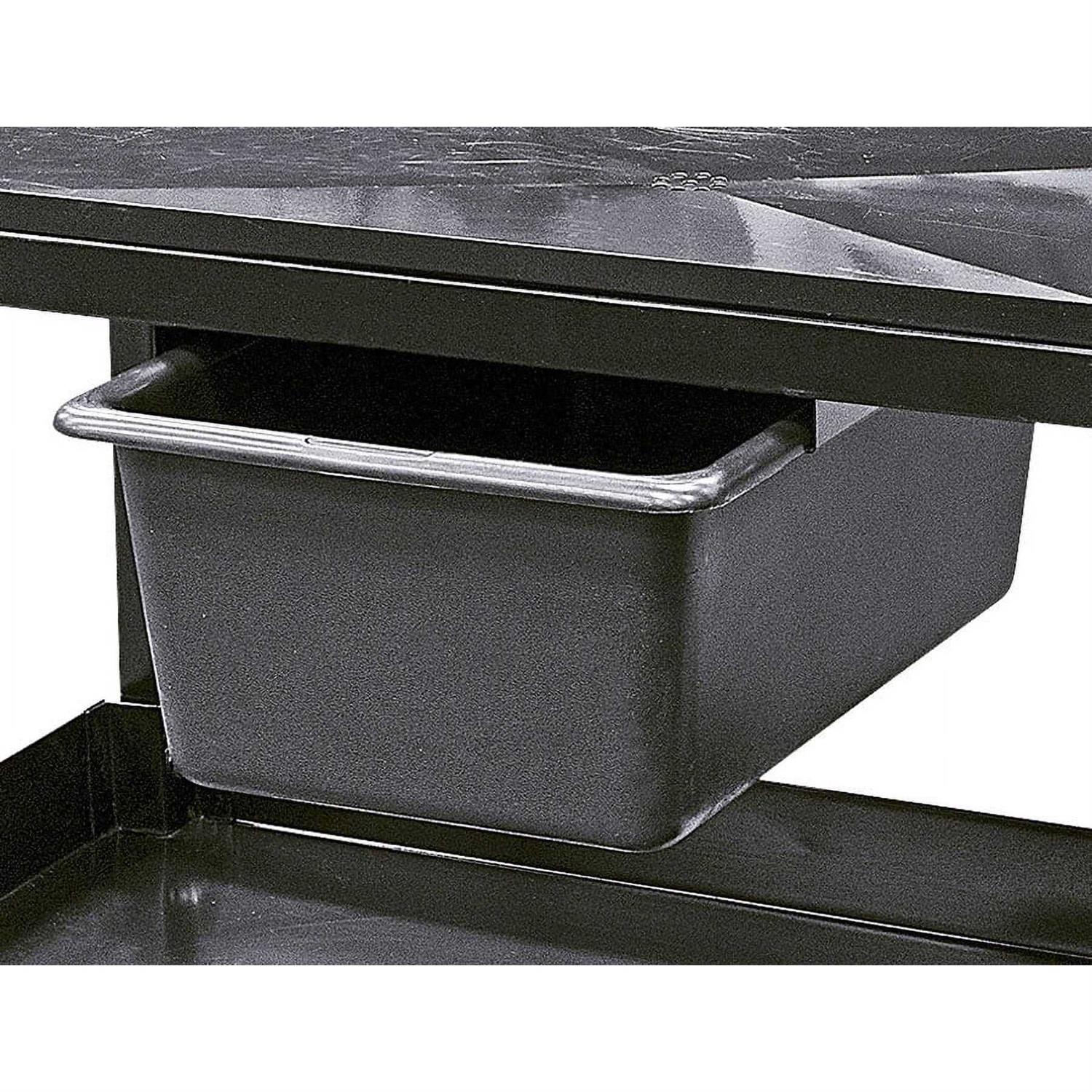 The Eastwood Tear Down Table features a space conscious, rugged steel work surface with integral drain, plastic Fluid Containment Basin and two shelves for extra storage. The Eastwood Tear Down Table Features: Holds up to 250 lbs.; 27″ x 16″ Working Space with Drain; 2 Storage Shelves; Heavy Steel Construction; Two 4″ Swivel Casters; Two 4″ Locking Swivel Casters; The heavy, all steel support structure and 4 casters support up to a total loaded weight of 250 lbs. [60kg.] yet is completely portable for rolling to the job and between project storage. Supports Up To 250 Pounds3 Gallon Capacity Fluid BasinTwo Storage Shelves