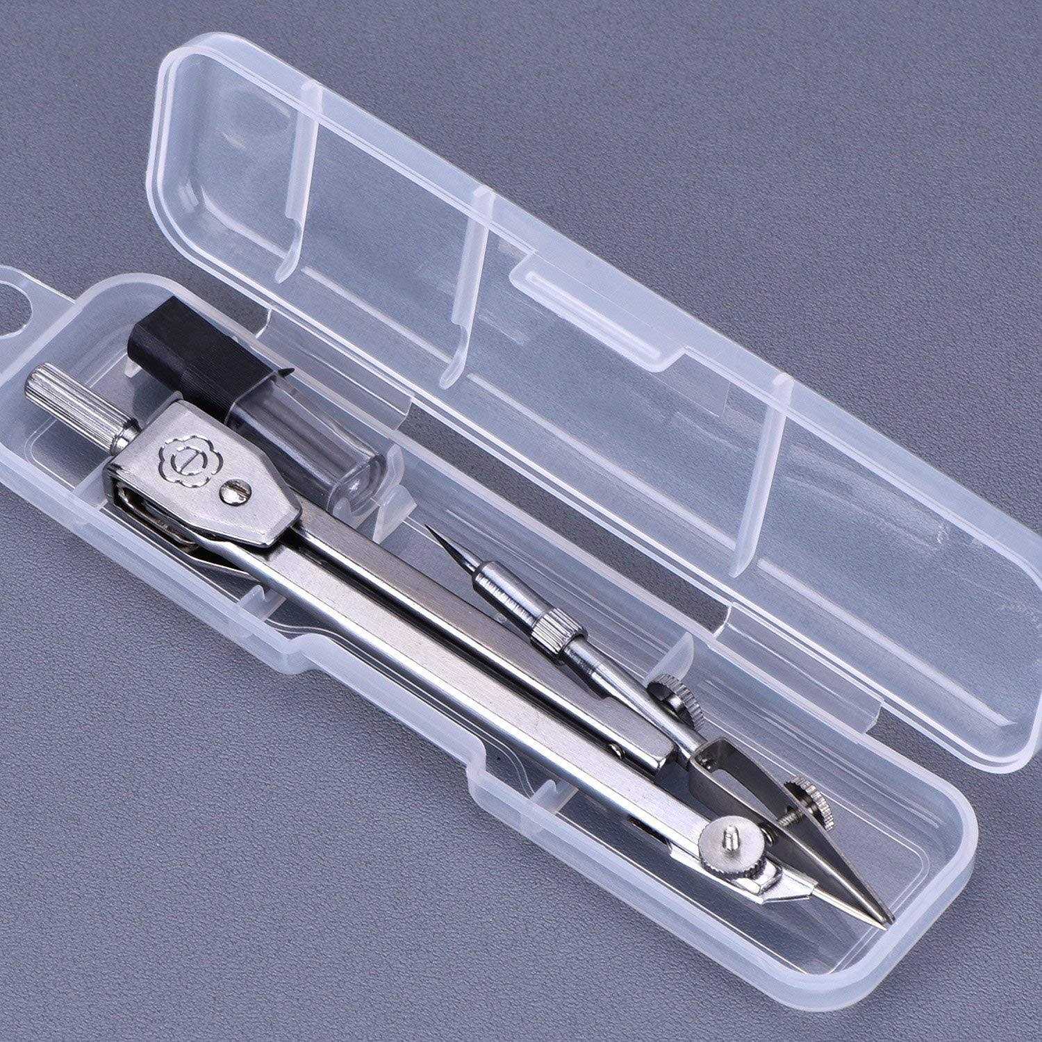 Student Geometry Math Set, Drawing Compass and 6 Inch Clear Swing Arm Protractors 180 Degree Math Protractor (Style 1) Durable stainless steel compass: Compass is easy to handle with a metal point holder and works smoothly for its excellent workmanship. The opposite side of the pencil end is an adjustable separated jaw which allows you to fix the ink or paint. Compass comes with a transparent box and pencil refills packaged in a small clear box, convenient to organize and carry. Sturdy plastic protractor: This protractor is thick enough, not easy to snap. With hollow center, the student protractor is easy to grip. The range of 0 to 180 degrees are precise and not easy to fade. Clear color allow you see the words, letters, figures on page through the protractor. Measure math tool: Compass and protractor are student geometry math set, good for drawing circle and measuring angle. Package includes: 1 x Compass 1 x Protractor Product Features 2 Piece math set: compass and protractor are great for drawing circle and measuring angle, good for students, teachers, engineers, designers, artists, etc. 2 Diverse tips design compass: compass is made of stainless steel, sturdy mechanism can hold a radius well; The opposite side of the pencil end is an adjustable separated jaw which allows you to fix the ink or paint Integrated compass package: compass comes with a clear box, contain 1 piece geometry compass and 1 box refill packaged in a transparent box, convenient for organized and carry 6 Inch protractor: made of plastic, inch marks is up to 6 inch, centimeter marks is up to 10 cm; Range of 0 to 180 degrees, and clear color allow you see the words, letters, figures on page through the protractor Warm notice: if you receive the product and found the screw of compass is loose, do not worry, it is not a quality problem; The loose screw makes it easier for you to turn the pencil lead down; You can tighten the screw after using pencil lead replace divider part
