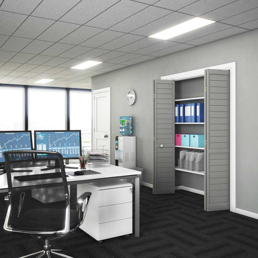 The Bifold Flat Louver Shaker Grey is the perfect combination of functionality and aesthetics. This traditional, but innovative product provides ventilation without those pesky dust-catching panels. Grey is the new must have essential color that is modern and edgy yet timeless and classic. Its the perfect chameleon as it suits just about every room, every mood and every setting. An engineered wood core and a fully finished grey color provide the quality and beauty your family deserves. This style of door serves several essential functions while looking great in the process. Modern, sophisticated and so easy to clean, flat vented louver bifold door is the best and most stylish option for your closet and pantry.