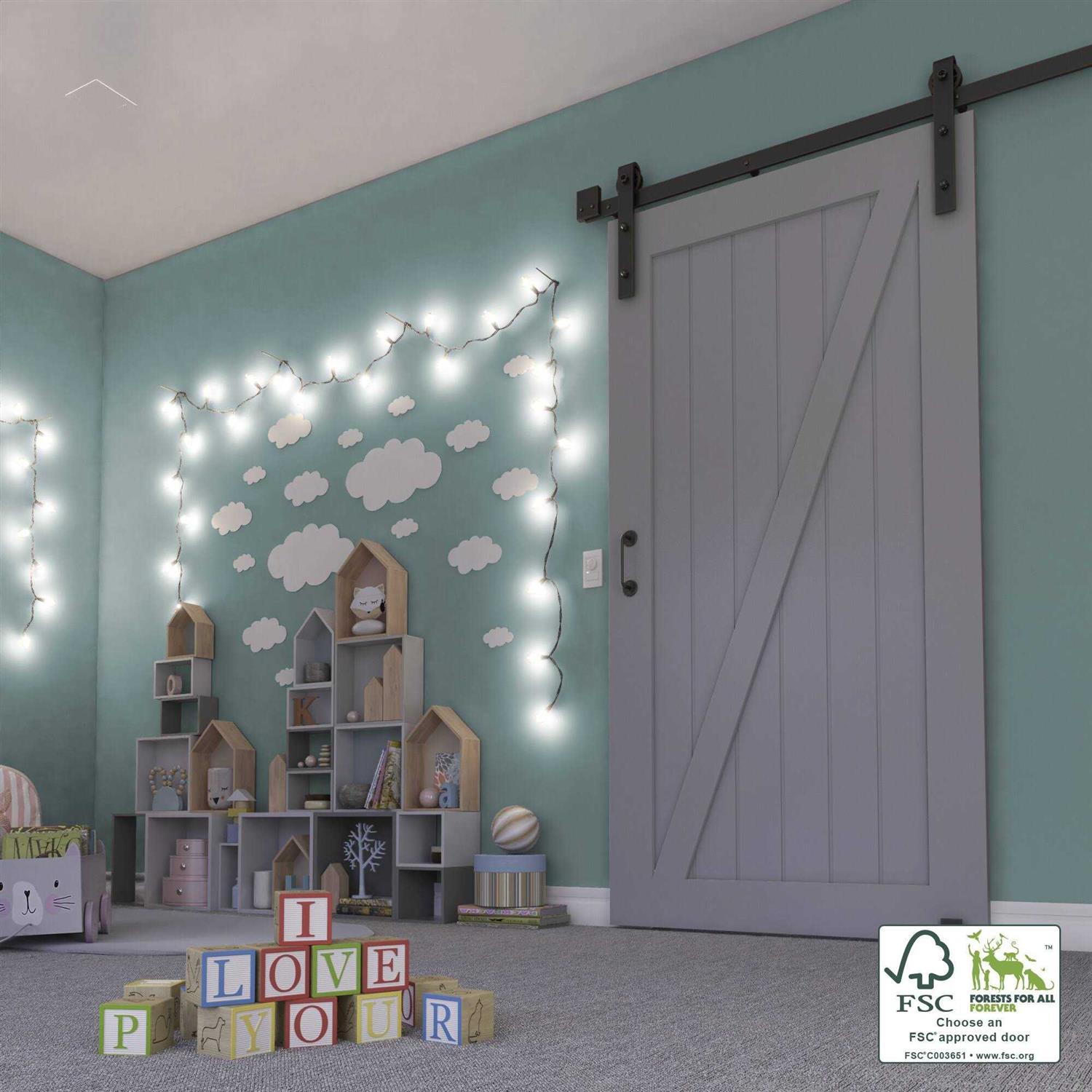 Barn door comes as a high demand product. In addition, the sliding space along the wall is perfect for leaving the ambiance with an elegant countryside feel. Saves space, it is easy to install and add a cozy detail to any home. While standard doors need a wide area to open and close, barn doors only require adequate wall space, meaning you can make maximum use of your square footage for furniture and decor and a perfect solution for dividing huge rooms. This door is pre-finished in grey and should not be stained in any way to prevent damage to the product. Made for interior use only.