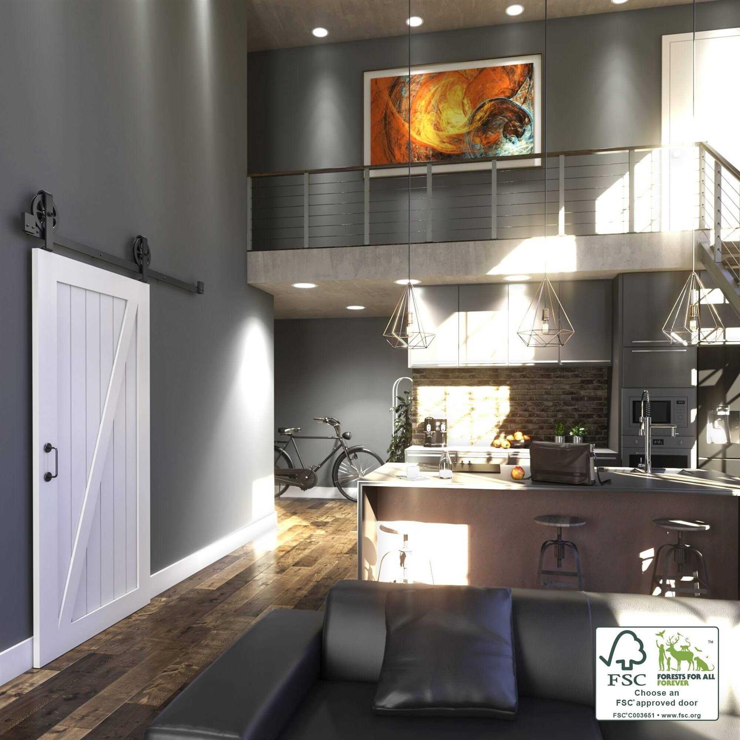 EightDoors Z-Shape White Primed Solid Wood Core Barn Door