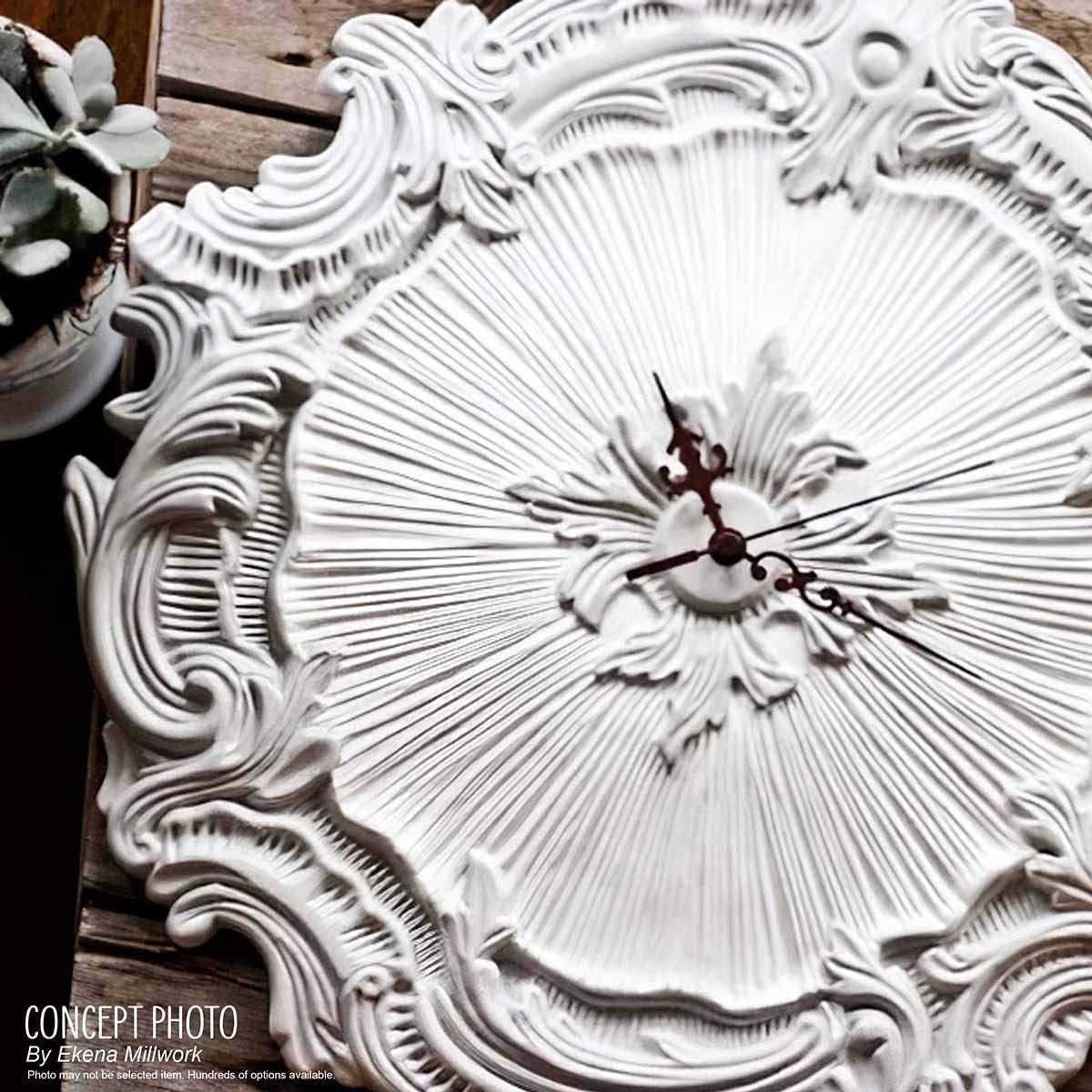 Dimensions: 12-1/2 in. Outside Diameter x 3-7/8 in. Inside Diameter x -3/4 in. Projection x 6-5/8 in. Canopy Lightweight for quick and easy installation Exquisite detail with huge collection of exclusive designs Can be cut, drilled, glued or screwed with common tools. Factory primed and ready for paint or faux finish Add a high-end upgrade inexpensively. Instant renovation with minimal time and effort Our sturdy medallions are made of the highest quality material, for a fraction of the cost of traditional plaster or wood. Our green, environmentally friendly material can be painted, gel stained, marbleized or faux finished making it ideal for a variety of interior and exterior applications. Easy installation using common woodworking tools and adhesive, provides a dramatic change with instant elegance and personality. Add luxury and attractiveness to an average ceiling fan, uninspiring light fixture, or get creative by mounting them on the wall for an innovative look.
