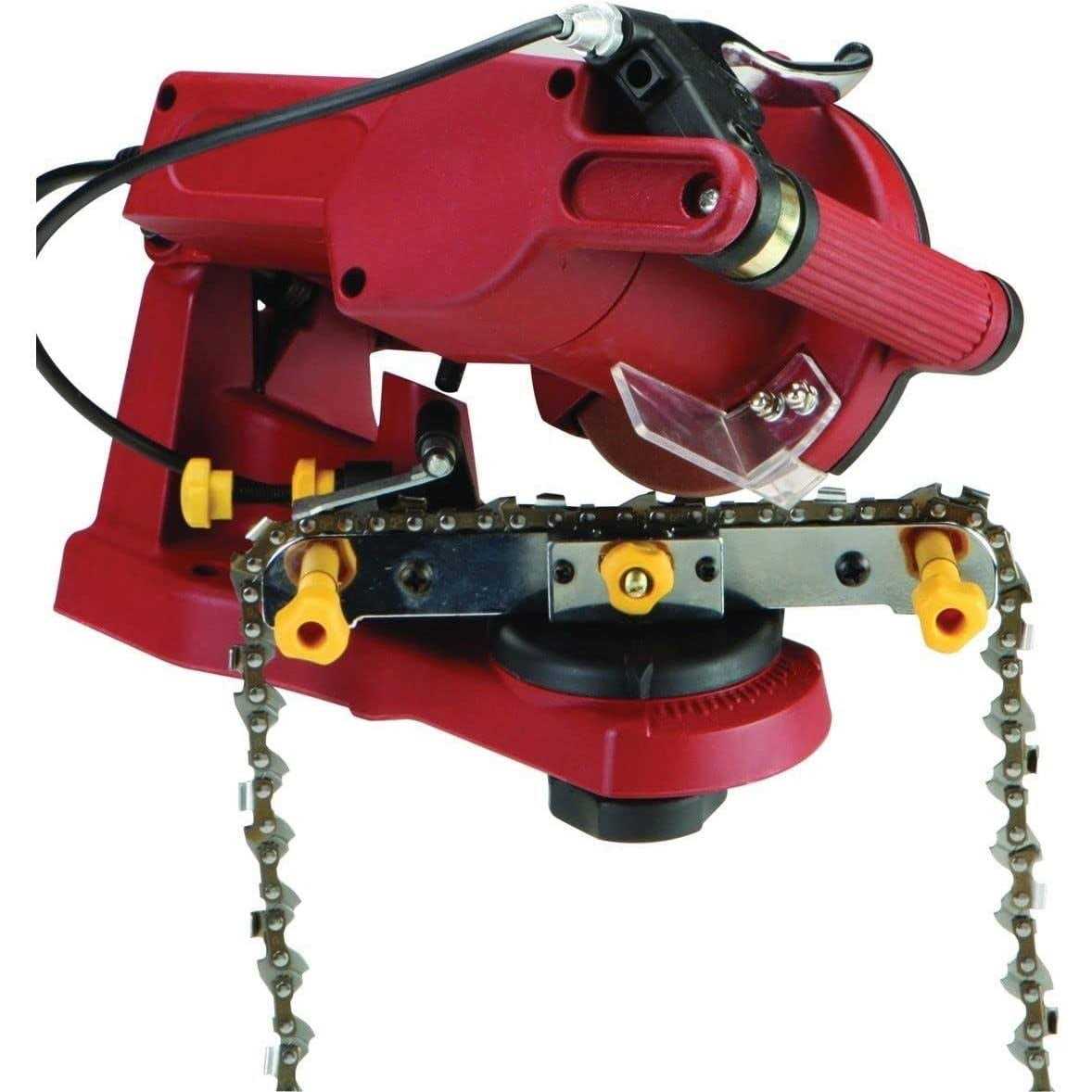 Conveniently sharpen saw chains with this electric chain saw sharpener. Built-in vise adjusts to the chain design and pitch.