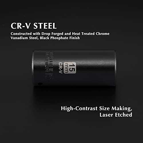 Constructed from high-strength Chrome-Vanadium Steel , with a protective black phosphate coating. 6-point design keeps a tight grip and prevents rounding off corners. Laser-etched with high contrast and specific size marking for identification. It helps you select the size easier. It comes with a sturdy and convenient storage case. Keep each piece in the proper position. Meets or exceeds ANSI performance standards.”