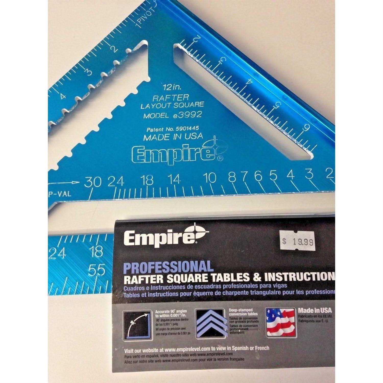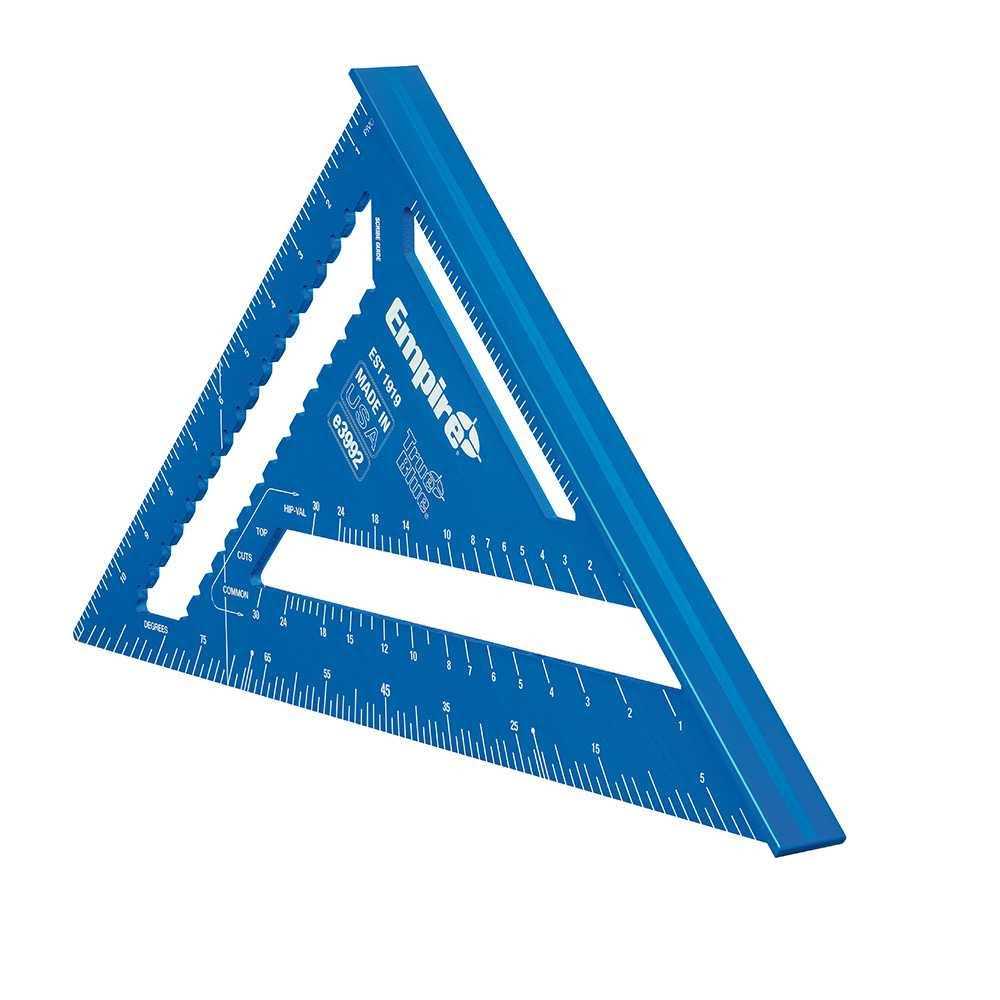 Use the Empire Level 12-Inch Hi-Vis Rafter Square to check roof pitch, mark angles and guide saw blades. This tool features permanently laser etched graduations that won’t fade over time and provide improved accuracy over other types of squares. For durability and corrosion-resistance, the Empire Level 12-inch hi-viz rafter square has an anodized aluminum construction. For your convenience, there are conversion tables on the tool that let you convert measurements for most applications. The Empire Level TRUE BLUE aluminum rafter square also features graduated scribe notches, which help make pulling layout lines a smooth process. With its vibrant blue color, the tool is easily visible, even in cluttered job sites. To find helpful information on how to use the rafter square, use the laser etched QR links on the square and view the online book.