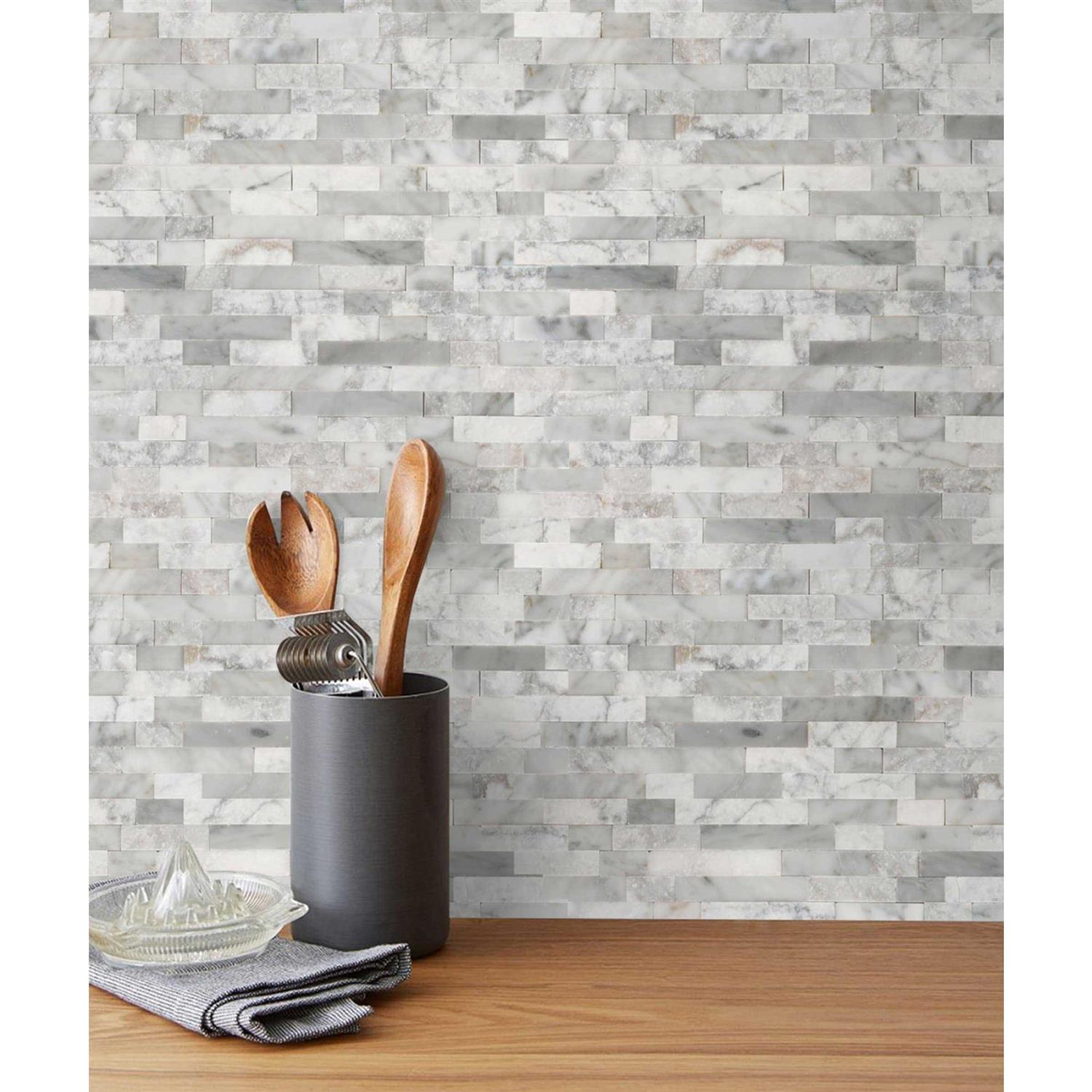 Emser Tile Feature White 12.01 in. x 17.99 in. Splitface Limestone Mosaic Tile
