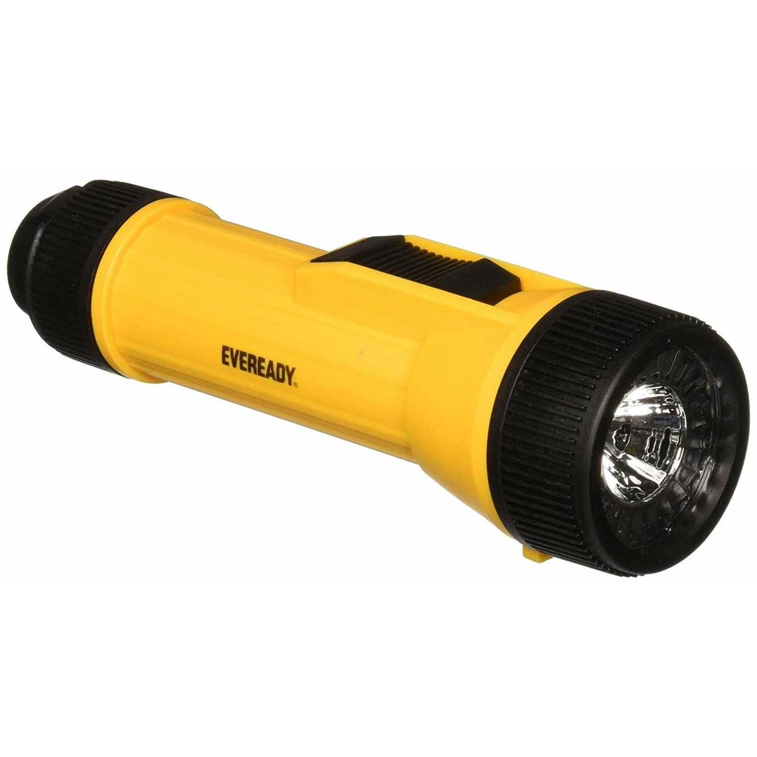 Eveready Industrial Economy (2D) Simple Design-Ideal for wet areas, the Energizer Industrial Heavy Duty Flashlight is weatherproof and shockproof. A built-in hanger ring makes it easy to keep this sturdy light within reach. An impact-resistant housing reduces the chance of breakage from dropping and abuse and the chemical-resistant polypropylene body protects it from staining and corrosion. This light is a great choice for demanding job site conditions. The Energizer Industrial 1251L 2D LED flashlight is a simple yet useful illumination tool. This hand-held light features a single output mode of 35 lumens, which makes it incredibly easy to use and beneficial in a variety of settings. There is no need for double and triple taps of the side switch in order to operate the light. There are also no Strobe or SOS functions to accidentally activate. This 2D LED flashlight, from Energizer, is a simple single-output light with a one-button interface. Heavy Duty Light The Energizer Industrial 1251L is constructed from polypropylene and other non-conductive materials, therefore making it extremely durable, long-lasting, and therefore perfect for use on a job site or in a construction zone. The bright yellow light is not only resistant to 1-meter drops and splashes of water, but it is also easy to find, due to its color. Finally, the Energizer Industrial 1251L is equipped with a hanging ring on its tail-cap for effortless transport and carrying.