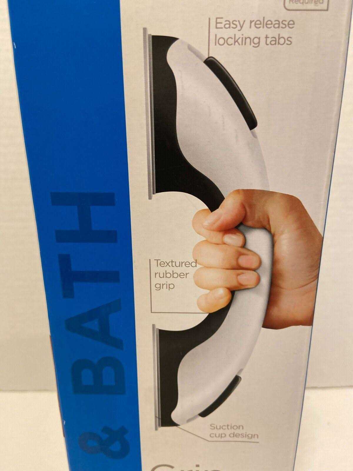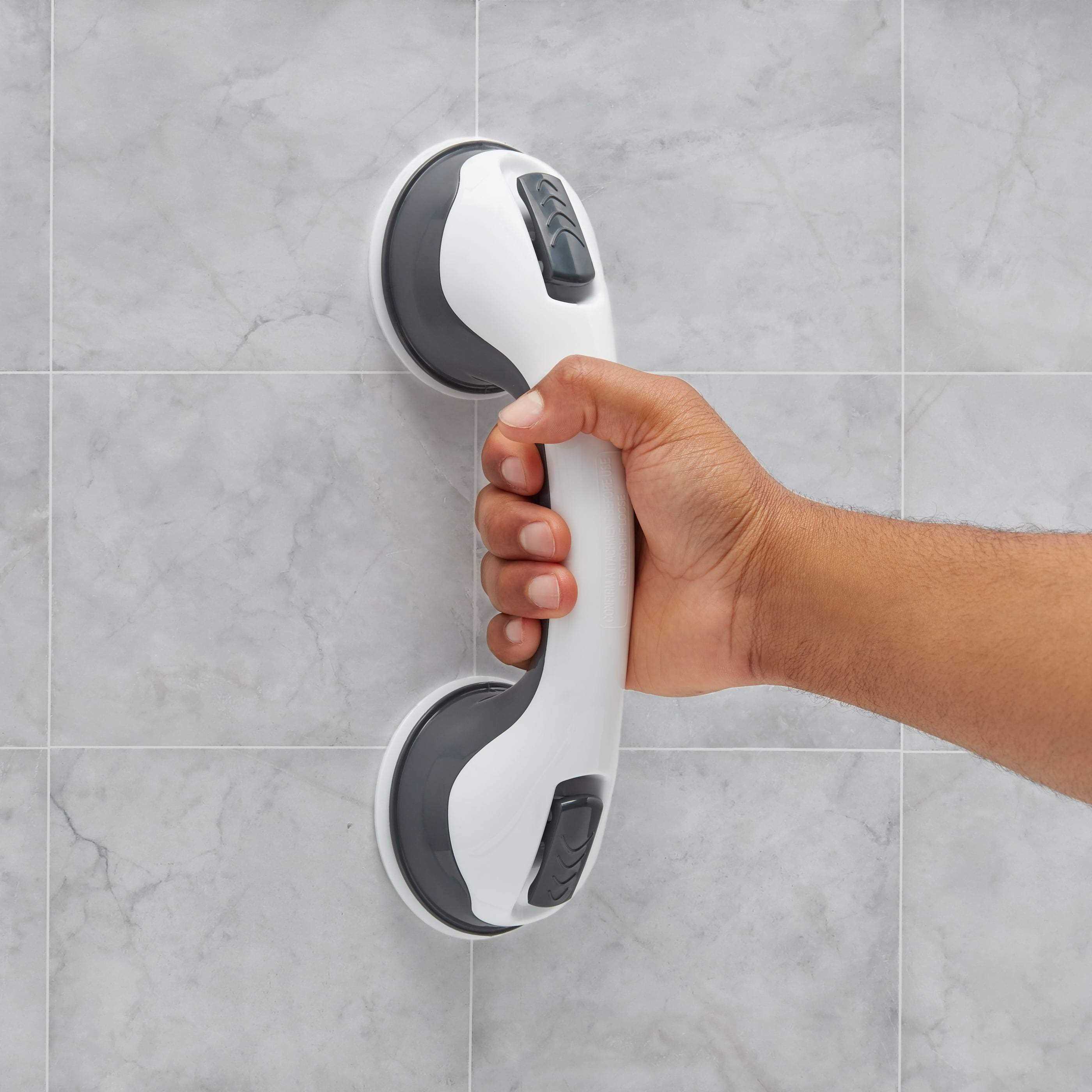 Promote a safer environment in the bathroom with this 11.5″ Equate Grab Bar. It’s made of sturdy plastic and is easy to maintain. The bathroom grab bar allows the user to enter and exit a bathtub or a shower safely and with confidence. It features a large, textured handle with a rubber grip that provides sustained comfort and control for improved stability. This portable bathroom aid also features easy-release locking tabs that make installing or relocating the product quick as well as easy, with no additional tools required. And, it has suction cups on the bottom that let you secure it to any smooth, dry, non-porous surfaces.