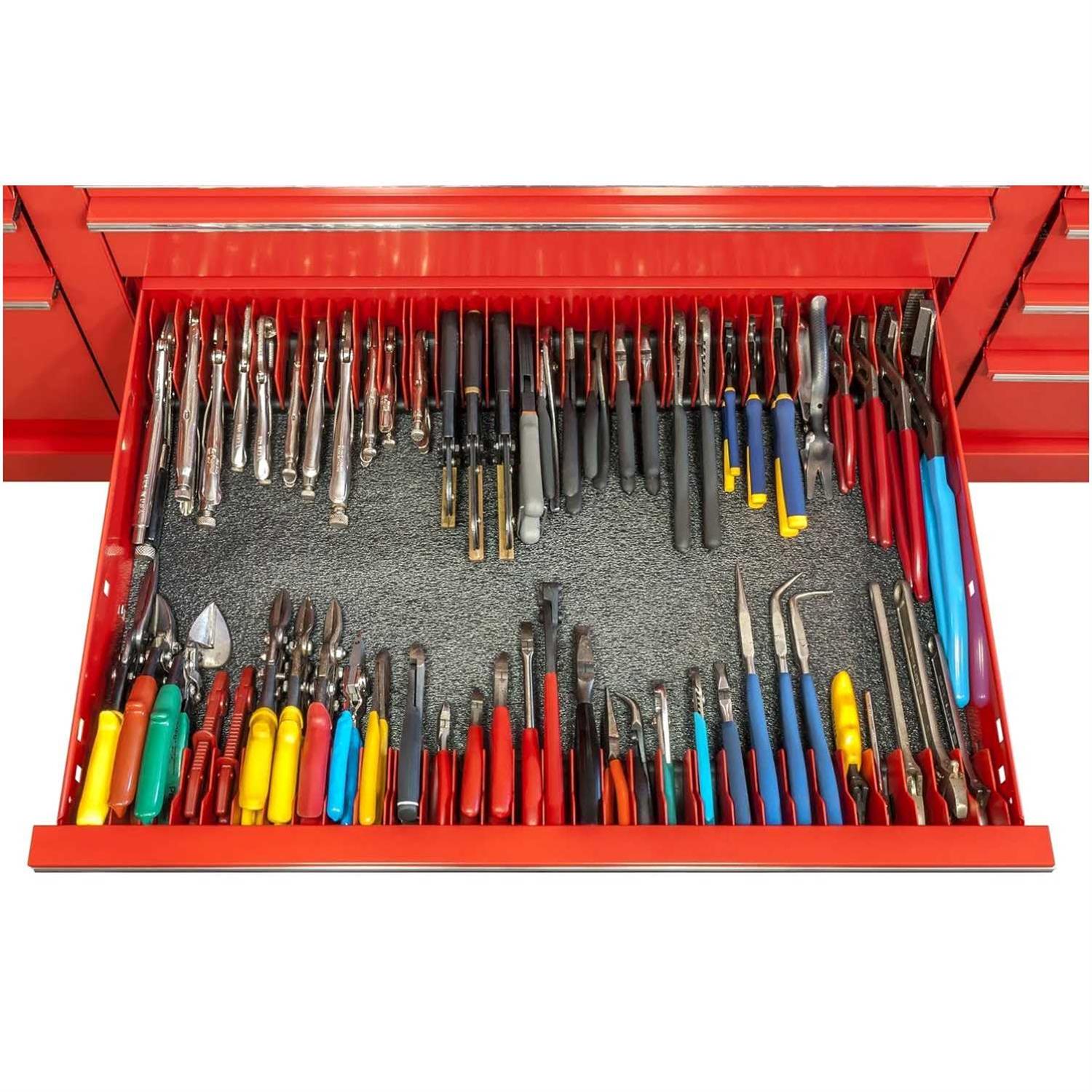 - No-slip plier storage for toolbox drawers