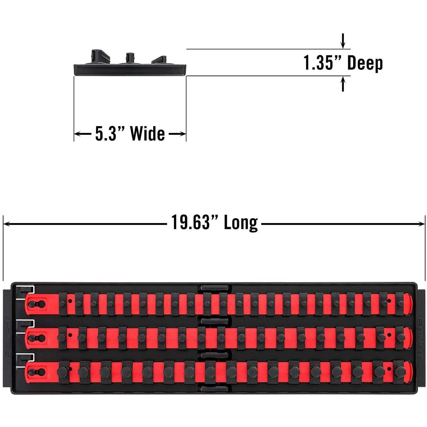 Ernst Manufacturing Ernst Socket Boss, Premium 3-Rail Multi-Drive Socket Organizer, Red (8450), 19-inch
