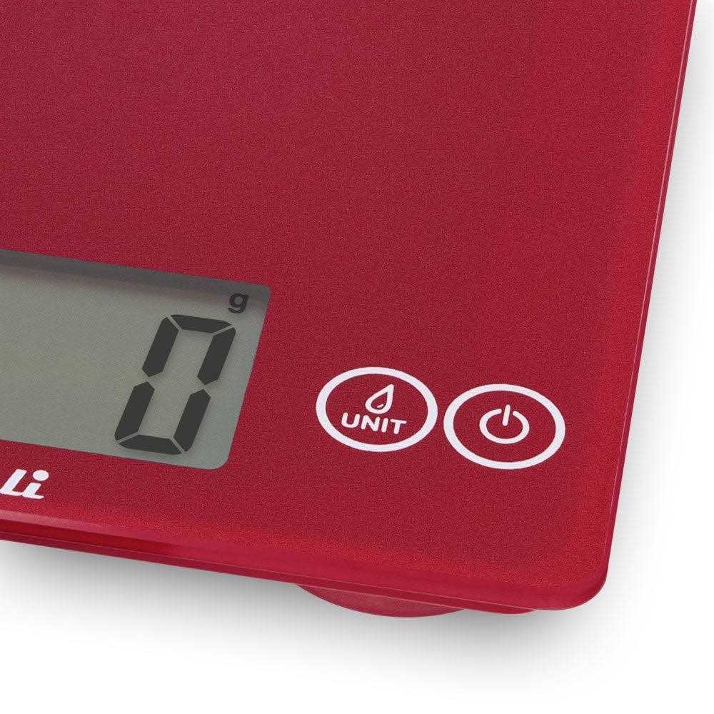 The Arti Scale features a super smooth and easy to clean, glass surface. It measures in ounces, pounds plus ounces, kilograms/grams, fluid ounces and milliliters. The Hold function holds the weight after removing the item from the platform, so you can fill and add to batter batches, without losing the weight count. Maximum capacity is 15 pounds or 7 kg. Tare and Cumulative Tare capable. Kitchen scale has an ultra slim design, measuring only 9″ x 6.5″ x .75″tall. Measures solids and liquids. Automatic shut off to preserve battery life. Operates on 2 Lithium batteries, included. Has a backlight feature for easy read.