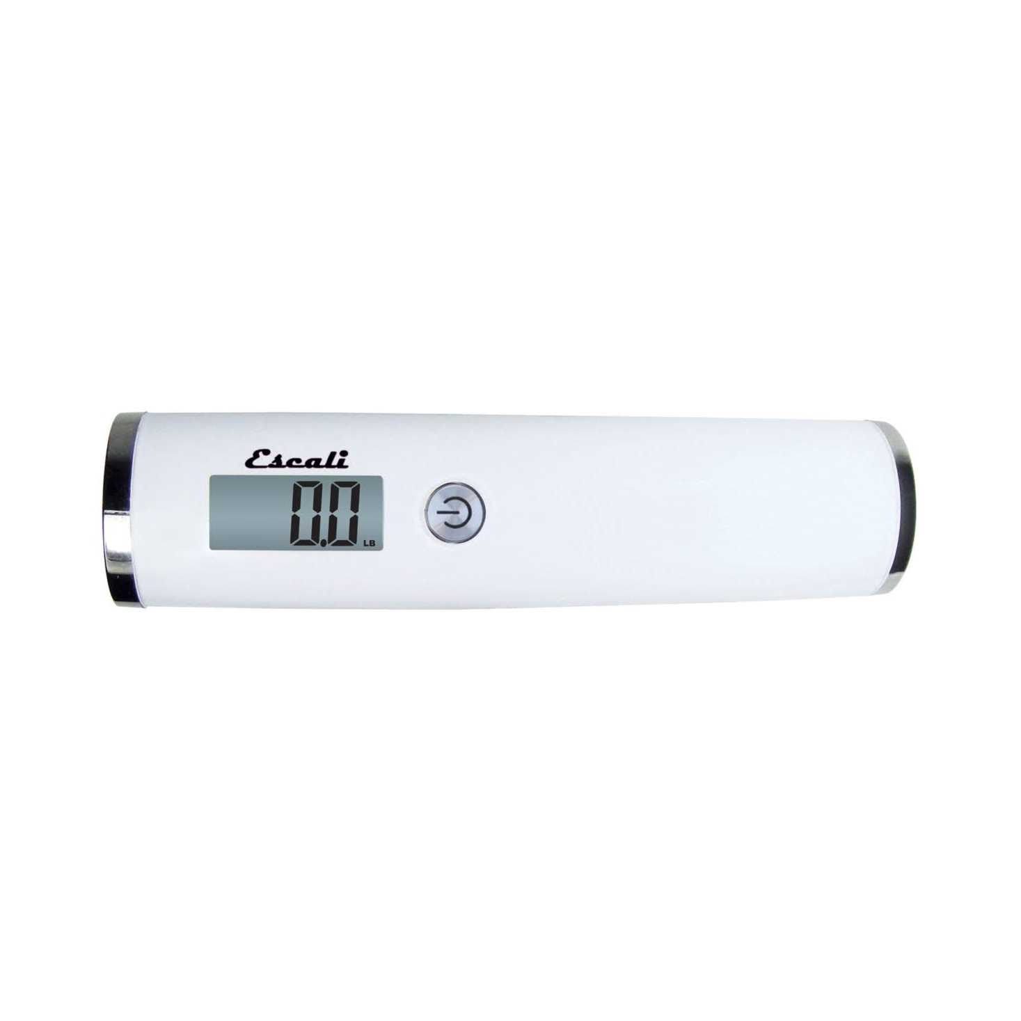 Escalis innovations in quality, accuracy, value and style are shaping the future of measuring technology in home and business settings. Escali offers a full line of kitchen scales, body scales, timers and thermometers. Synthesising contemporary design with unmatched accuracy, Escali products are sold around the globe and provide information in a choice of standard or metric formats. Escali products are widely recognised for precision measurement, useful features, smart styling and exceptional value. Escali’s distinguished product development and technical team located in Minneapolis, MN combines years of category experience with unparalleled commitment to new product innovation. The handle feels comfortable in your hand to make lifting heavy luggage easier. Capacity 110 lb (50 kg) Increments 0.2 lb (0.1 kg) Units lb, kg Battery One CR2032 (included) Subtract a containers weight to obtain the weight of its contents Never pay overweight bag fees again! This high quality luggage scale features easy, 1-button operation, stainless steel clasp, and a tough nylon strap. Available in either white or black colours!