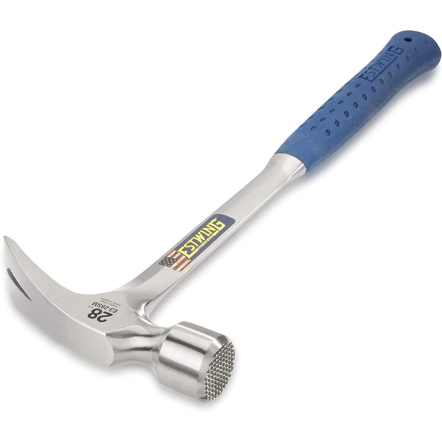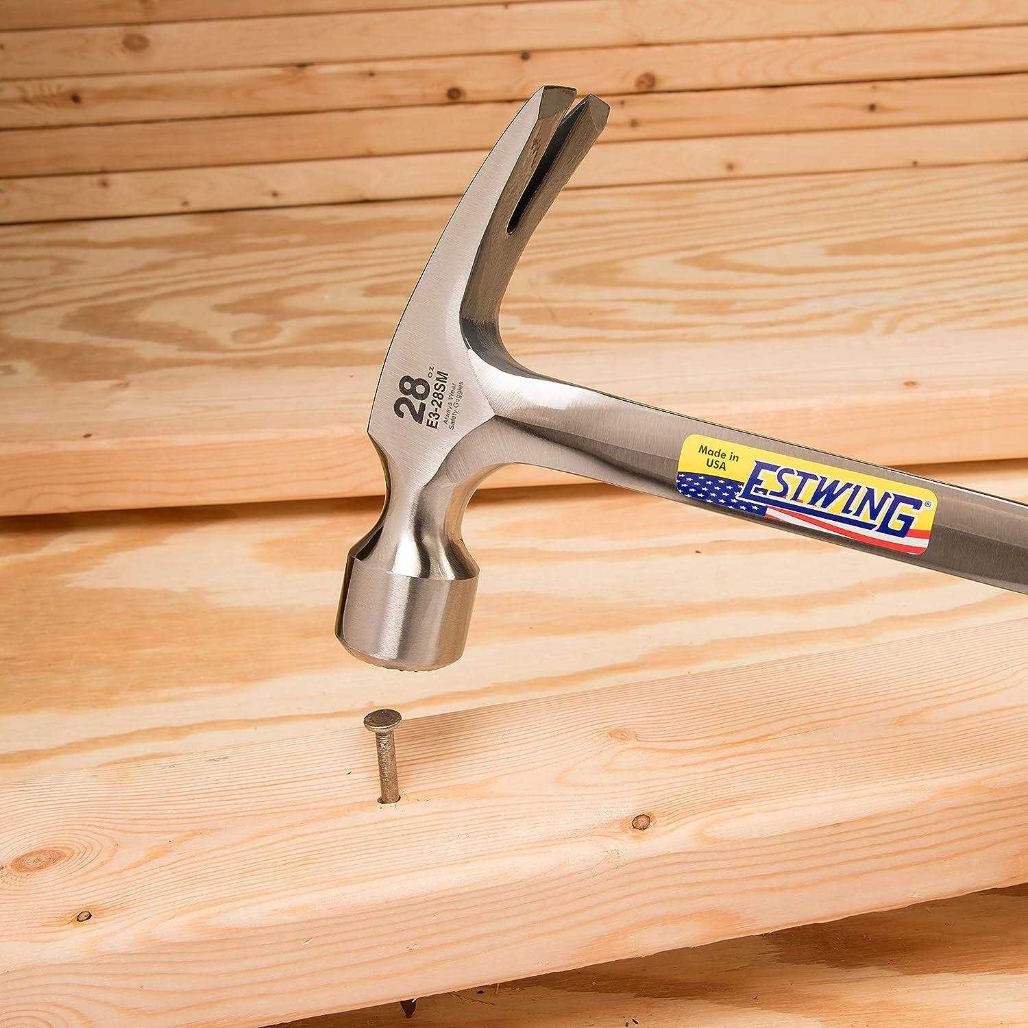 Estwing Framing Hammer – 28 oz Long Handle Straight Rip Claw with Milled Face & Shock Reduction Grip – E3-28SM
