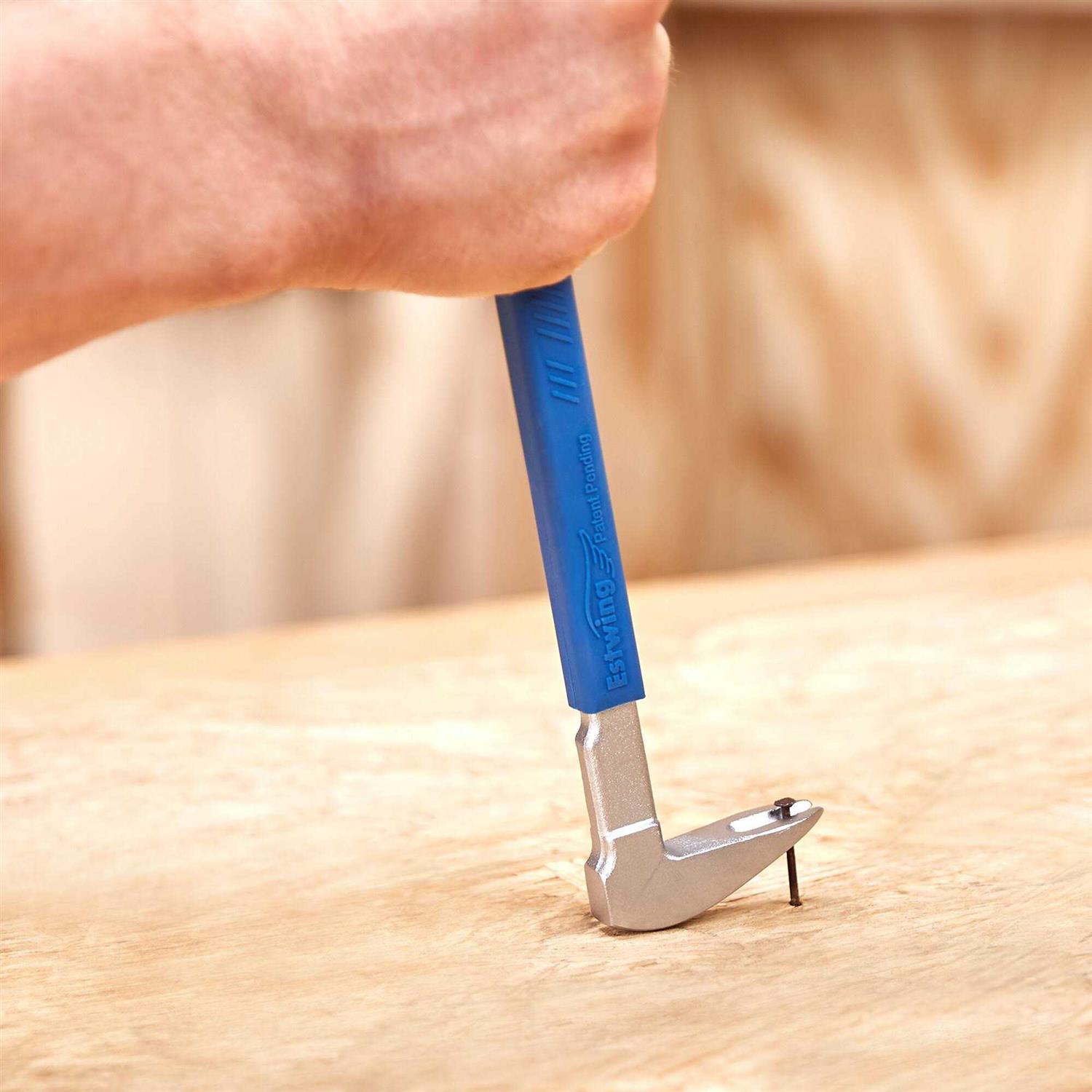 Estwings Japanese pattern design Pro-claw nail pullers are made with fine tool steel, drop forged and tempered for extra durability. Chrome finish and comfortable blue cushion grip. Both nail puller claws are precise and sharp to remove embedded or headless nails with ease and minimal wood damage. Shape and rounded head design gives you improved leverage. Precision thin claw design enables you to get into hard to reach places. For use in nail removal right angled for removing embedded and headless nails. Estwings nail pullers have polished ends and are extremely strong and durable, these tools can pull a variety of fasteners. The nail puller claws are precise and sharp to remove imbedded or headless nails with ease and minimal wood damage. Shaped rounded head design gives you improved leverage. Precision thin claw design enables you to get into hard to reach places.